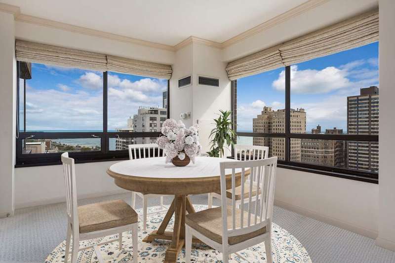 Incredible, one-of a kind corner duplex penthouse in an elegant boutique vintage building on fabulous tree-lined North State Parkway. This versatile floor plan offers two levels of expansive space, perfect for entertaining and comfortable living. The main level features a wide open light and bright living/dining space with multiple seating areas featuring gorgeous north and east views of the lake and city, and a wood-burning fireplace. Adjacent to the dining space is a fantastic eat-in gourmet kitchen with beautiful lake views and a west facing balcony to enjoy sunsets. Also on the main level is a luxurious primary suite with an adjacent office/study with built-ins and second large bedroom and full bath. A gracious, inviting foyer and powder room complete the main level. The lower level features newer hardwood stairs and flooring, an enormous recreation/family room area with beautiful custom built-ins and window seating, a second recently updated kitchen/laundry center outfitted with a built-in ironing board, refrigerator, microwave and wine cabinet, plus three additional spacious bedrooms with custom built-ins, two of which are ensuite. The lower level offers a second balcony and newly renovated powder room.Other features include abundant storage throughout, zoned heating and central air. Attached, heated rental garage includes a weekly car wash and guest parking. The building features 24-hour door staff and on-site engineers, an exercise room, bike room, common laundry room as well as additional storage. Ideally located just steps to all that the Gold Coast has to offer including the lakefront, parks, schools, farmers markets, shops, restaurants and more.