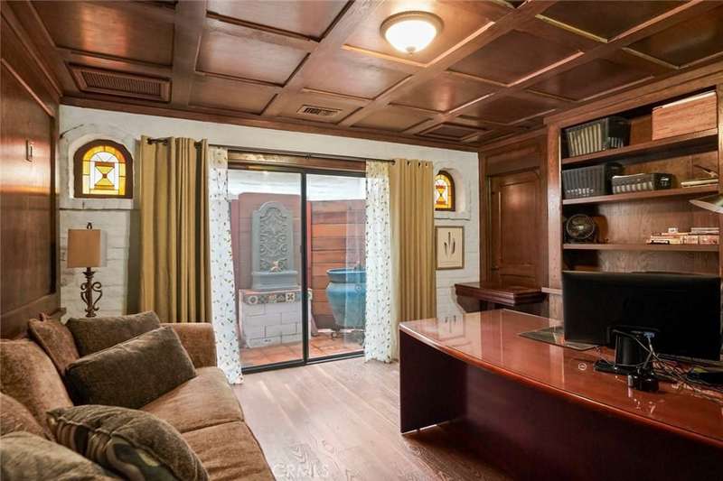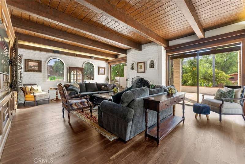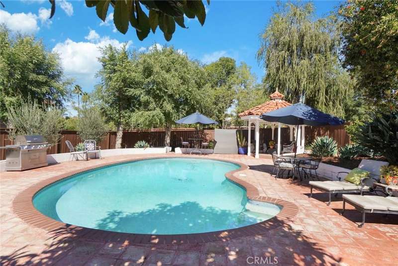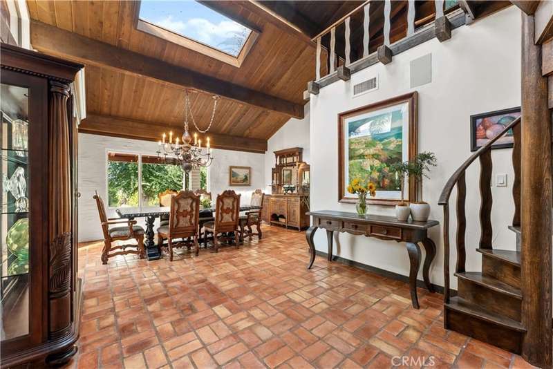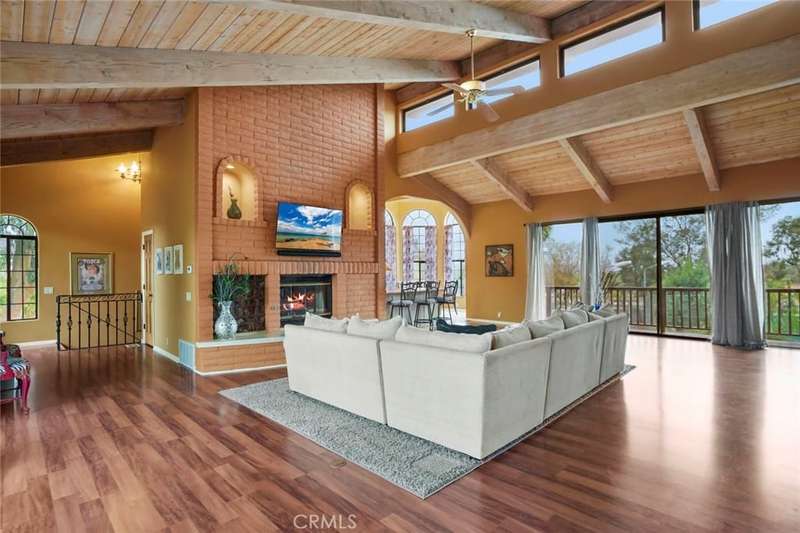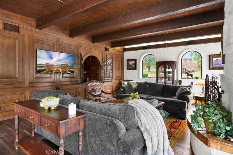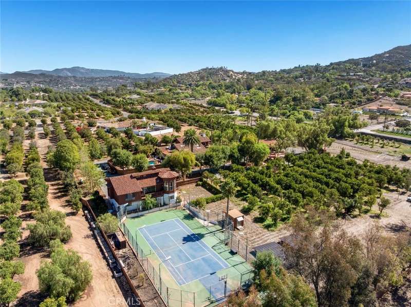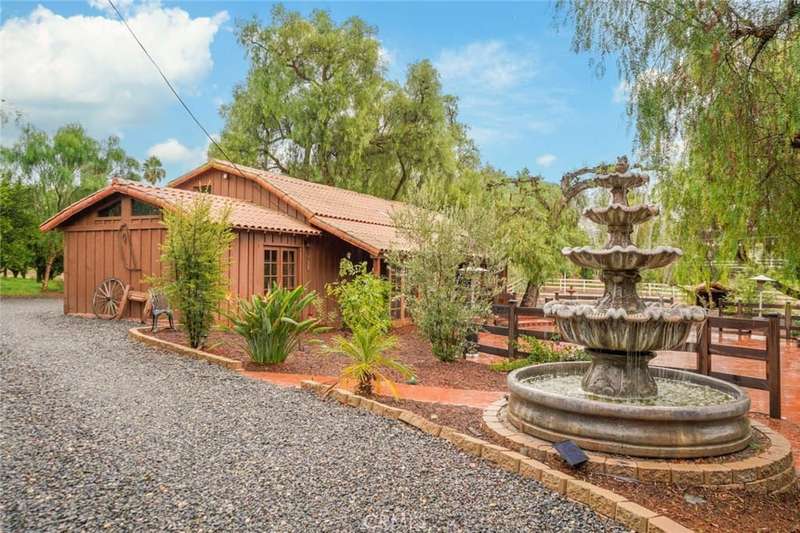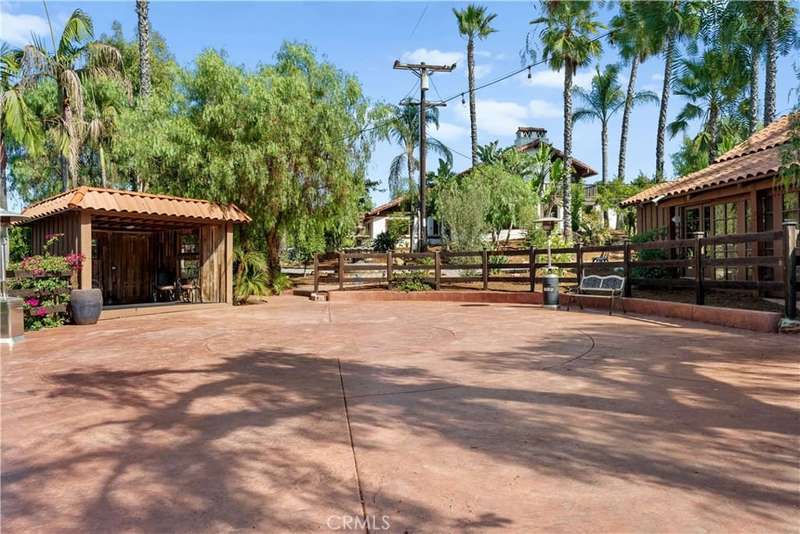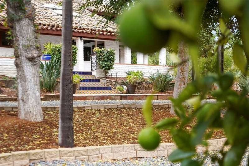 With a rare blend of old-world charm and modern amenities, this hacienda style estate brims with history, grace, attention to the details for fine living, entertainment and enjoyment of the land. The main house showcases classic hacienda elements plus a generous guest house provides a comfortable stay for visitors. Nestled on over 6 lush acres, everything was designed for unforgettable gatherings. The expansive entertainment pavilion features party rooms, a kitchen, bathroom and bar. Host lively events on the dance floor, dine under ambient lighting, or enjoy live performances on the built-in stage. Stroll through your own flourishing grove of delicious Valencia oranges and passion fruit irrigated by your private well. Tend to your horses or farm animals at the nearby corrals. Grab a game at your private sport court and a swim afterwards in the refreshing sparkling pool. Eco-conscious solar panels are owned. Find dedicated parking and hookups for your RV next to a custom deck. The private gated entrance and beautiful tree lined driveway is timeless and impressive. Whether looking for a private oasis or a family compound, hobby farm or expand your crop, tend to a horse or buy another, this stunning property has it all.