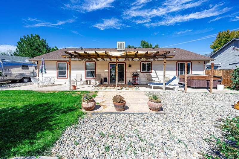 Wonderful Fruita ranch home with split bedroom floor plan in desirable Fruita neighborhood. Spacious living area with vaulted ceilings give the feeling of openness. Fresh interior paint, new LVP Flooring and updated bathrooms. Plenty of counter and cabinet space in the kitchen plus a great pantry for additional storage. Yard features and nice covered patio and includes a hot tub. Gated RV parking with room for several vehicles and separate large shed for added storage. Comes with all appliances including washer and dryer. All info, including measurements, should be verified by buyer.