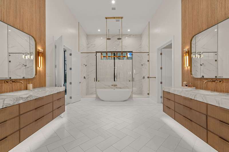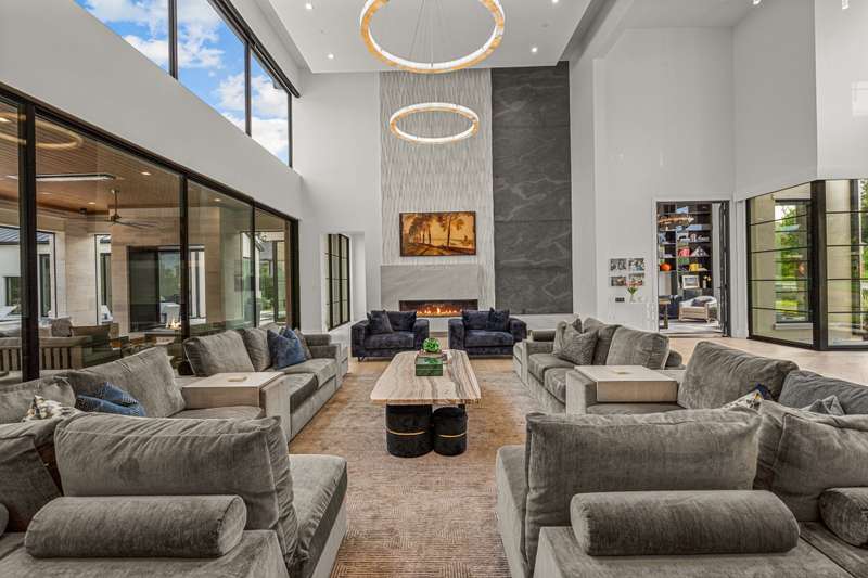 Exuding timeless sophistication, this distinctive estate graces the prestigious guard-gate of Quail Hollow.Spanning 9,732 square feet, this architectural gem features 6 bedrooms, 6.2 baths, and a detached casita.From the captivating fire features at its entrance. to the pristine white stucco exterior with limestone&wood accents, every detail exudes sophistication.Enter the exquisite great room boasting soaring ceilings, Western sliders, and a majestic floor-to-ceiling fireplace crafted from fluted marble. A Chef's Kitchen, complete with an oversized honed quartzite island and premium Subzero&Wolf appliances, and a separate prep kitchen adds convenience.The luxurious Master suite offers elegant wallpaper, a quartzite fireplace, and a Master bath adorned with exotic marbles and white rift oak cabinets. Outdoor kitchen with Heston appliances, a glistening Watercrest pool, and expansive patio. A separate casita with a full bathroom, sauna& kitchenette, perfect for guests and entertaining.