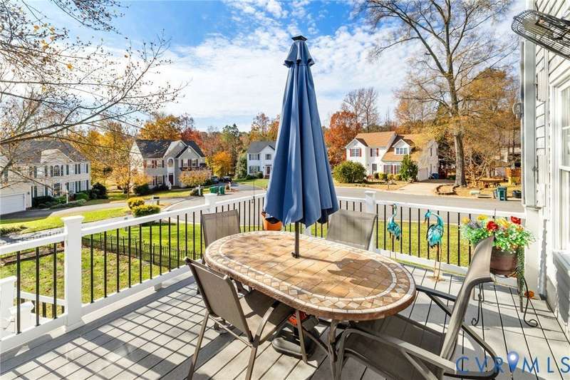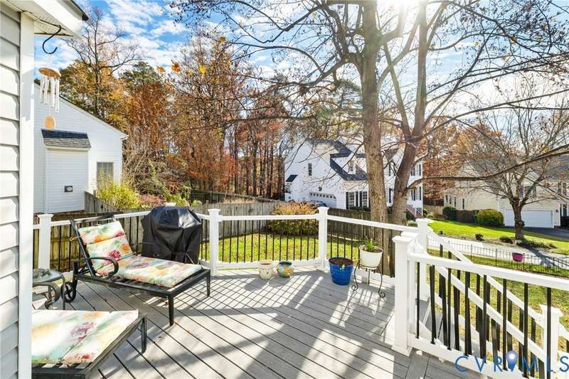 Welcome to 7607 Hungary Woods Terrace - a beautifully maintained 4-bedroom, 2.5-bath home in the sought-after Hungary Woods community. With 2,240 square feet of comfortable living space, this property combines timeless design, thoughtful updates, and a location that offers convenience and community. Step into the inviting two-story foyer and you'll immediately feel the home's warmth and flow. The traditional layout offers both formal and casual living spaces - perfect for entertaining or everyday life. The formal living and dining rooms feature abundant natural light, while the spacious family room, complete with surround sound and direct access to the deck, provides the ideal gathering spot for family and friends. The updated eat-in kitchen is the heart of the home, boasting stainless steel appliances, a center island, pantry storage, and a charming bay window breakfast nook overlooking the backyard. Upstairs, the primary suite is a true retreat with dual walk-in closets and a private bath featuring double vanities. Three additional bedrooms, a full hall bath, and a convenient second-floor laundry room complete the level. Outside, enjoy the fully fenced backyard, expansive deck perfect for outdoor dining, and a corner lot that offers privacy on two quiet cul-de-sac streets. The home has been exceptionally well cared for, with a newer HVAC system, newer water heater and roof replacement for peace of mind. Located just minutes from top-rated Henrico County schools, parks, shopping, and dining - and with easy access to major commuter routes - this home offers the best of both comfort and convenience. Experience pride of ownership and easy West End living at 7607 Hungary Woods Terrace.