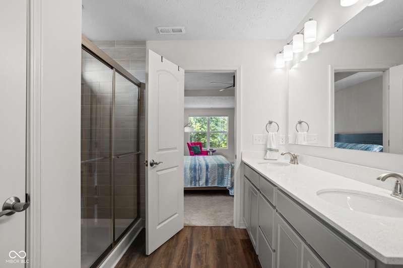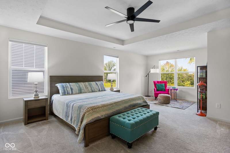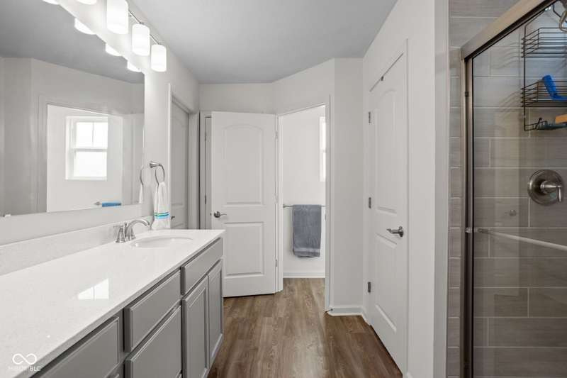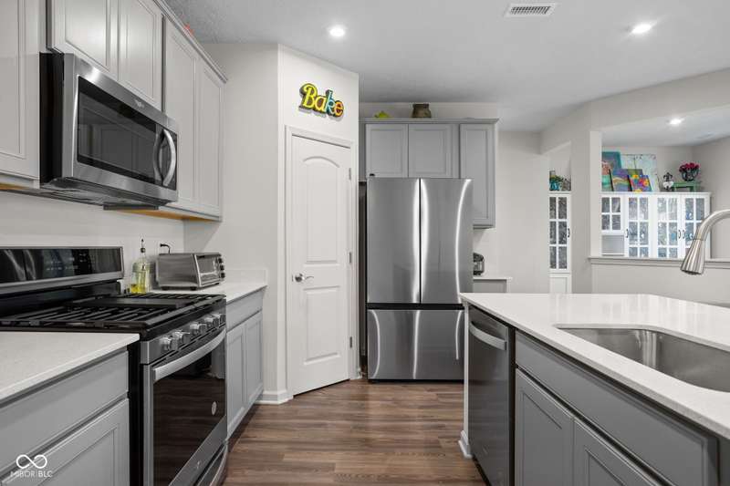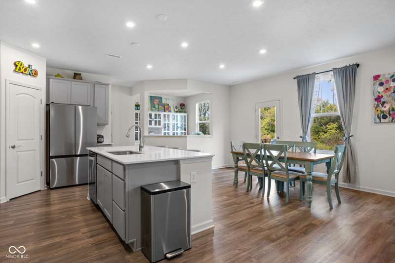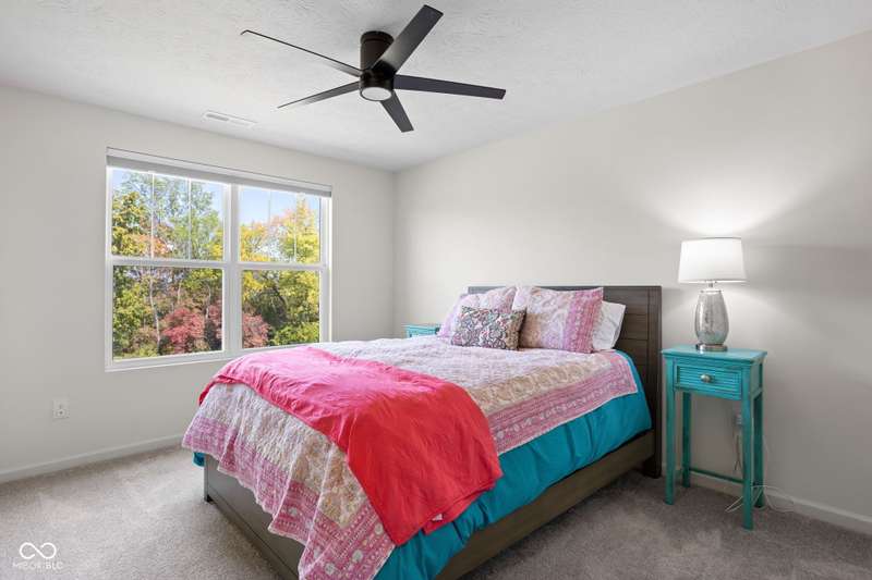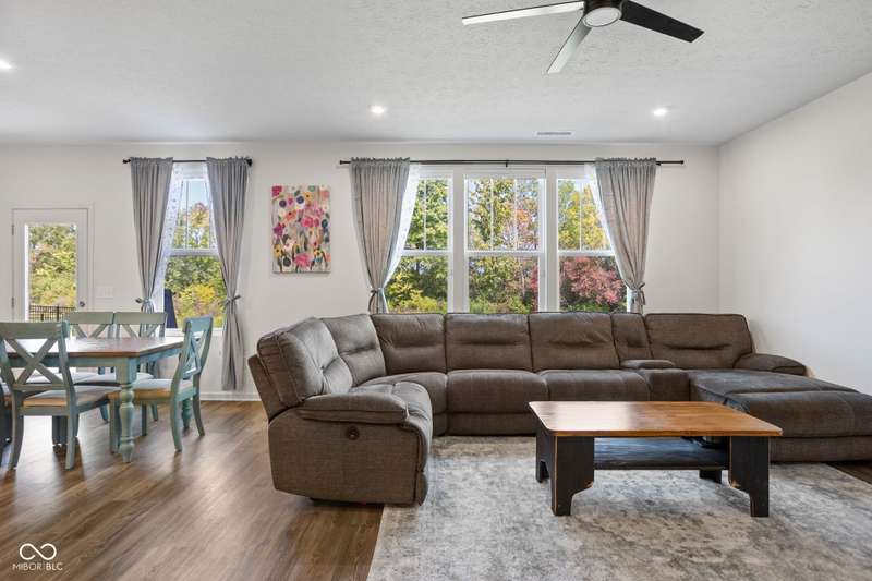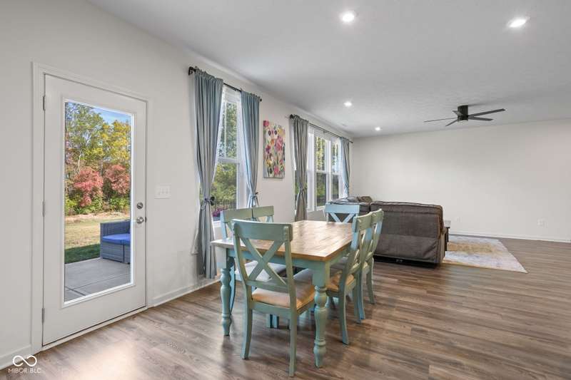 Welcome to this beautifully crafted 2024 Pulte home in Whitestown's sought-after Bridle Oaks community. With 4 bedrooms, 2.5 baths, and 9' ceilings on the main floor, this home was designed for both comfort and style. The open-concept main level is the heart of the home, featuring a bright kitchen with quartz countertops, stainless steel appliances, a walk-in pantry, and a spacious center island that flows seamlessly into the dining and living areas-perfect for gatherings and everyday living. Just off the kitchen, you'll find a versatile flex space ideal for a small office, homework area, or creative nook. A separate den with French doors provides additional privacy for a home office, library, or playroom. Durable LVP flooring runs throughout the main floor, offering both elegance and easy maintenance. Upstairs, retreat to the expansive primary suite with a large walk-in closet, dual raised vanities, and a walk-in shower. Three additional bedrooms-all with their own walk-in closets-ensure plenty of room and storage for family or guests. Step outside to enjoy a large backyard with an open patio, backing to a wooded tree line and the scenic Big 4 Trail, perfect for biking, walking, or simply relaxing in nature. A covered front porch adds curb appeal and a welcoming space to unwind. Bridle Oaks offers a prime location near the Whitestown Library, LA Cafe, and Moontown Brewing, with shopping and dining just minutes away. Combining thoughtful design, quality finishes, and a neighborhood that connects you to both convenience and the outdoors, this home truly has it all.