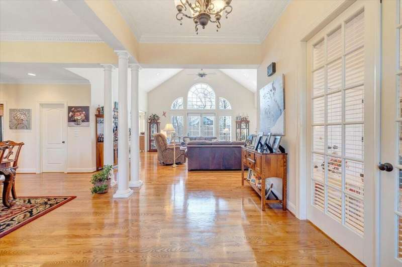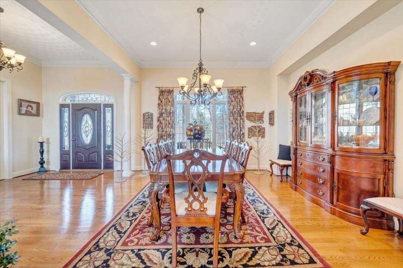 Welcome to this exceptional all-brick estate home on 95 +/- private acres in Catawba, VA, offering panoramic mountain views, unmatched privacy, and a rare multi-use layout ideal for equestrian, agricultural, recreational, or multi-generational living. A gated private drive leads to a beautifully maintained 7-bedroom residence featuring a full finished basement with a complete second kitchen, and a fully independent in-law suite. Hardwood floors span the main level, with tile and luxury vinyl plank throughout the lower level-no carpet anywhere. The property includes a 2-car attached garage, a detached 3-bay garage, multiple fenced pastures, three run-in sheds, and a year-round spring-fed creek that has never run dry. The land is ideal for horses or cattle, with 5
