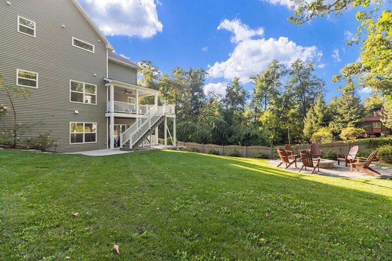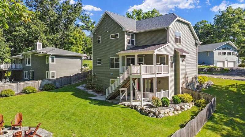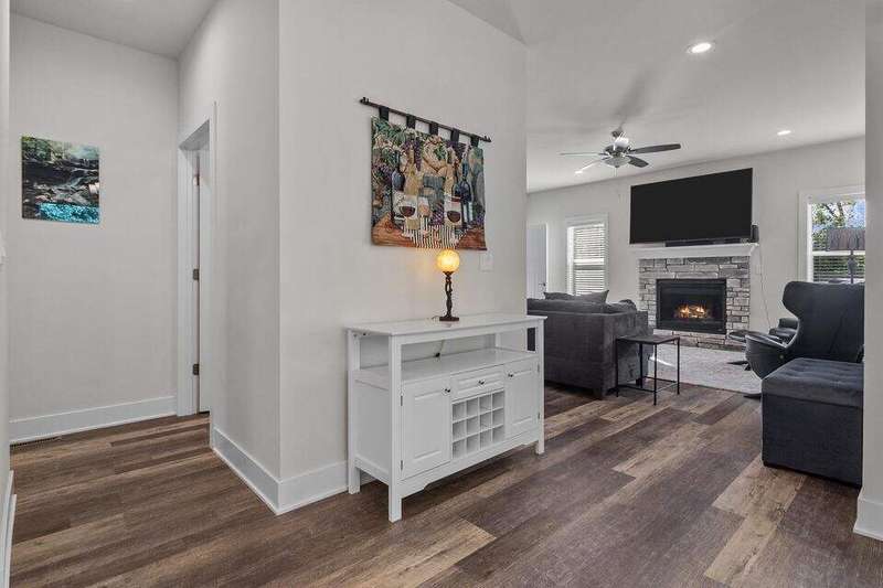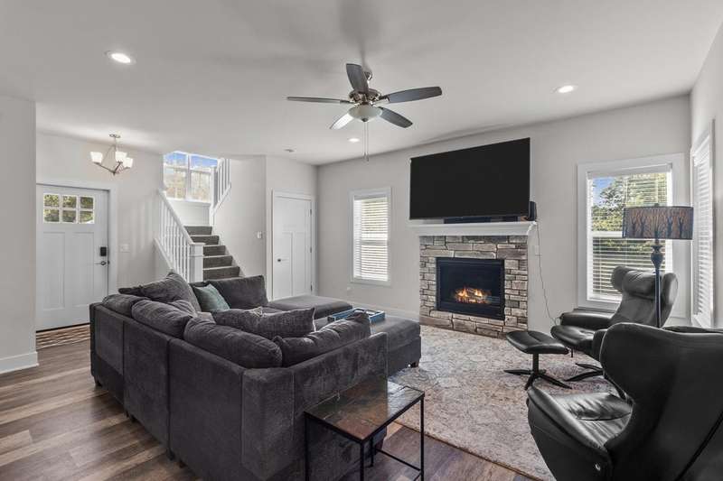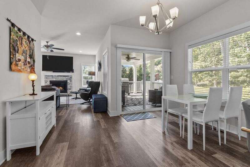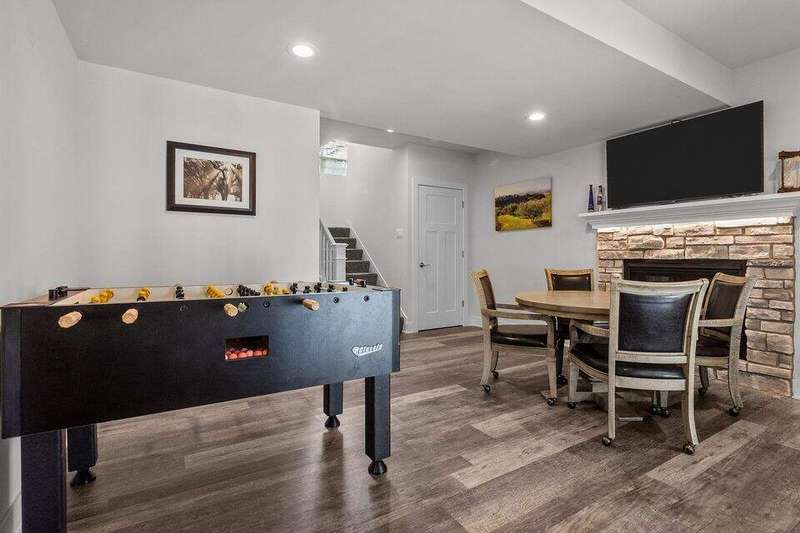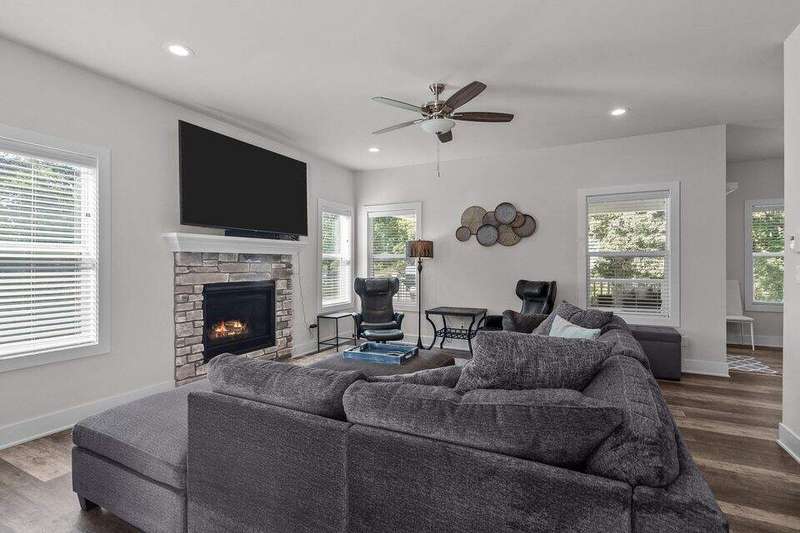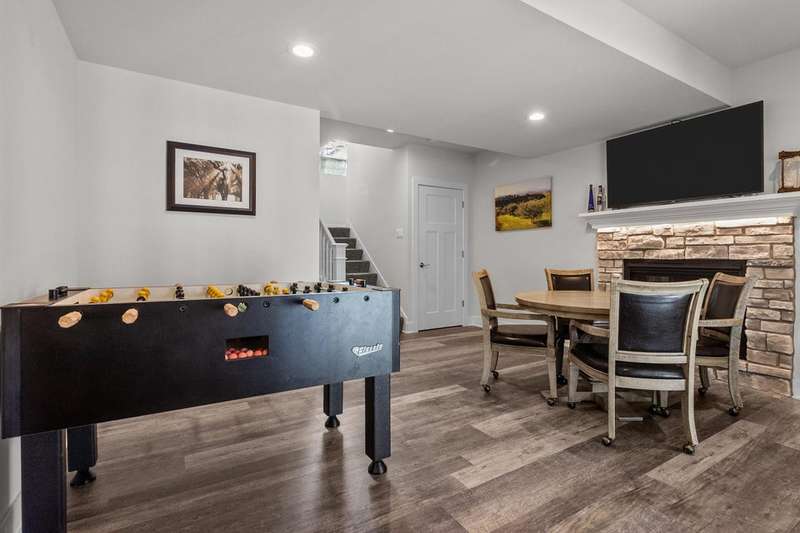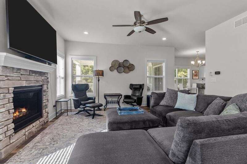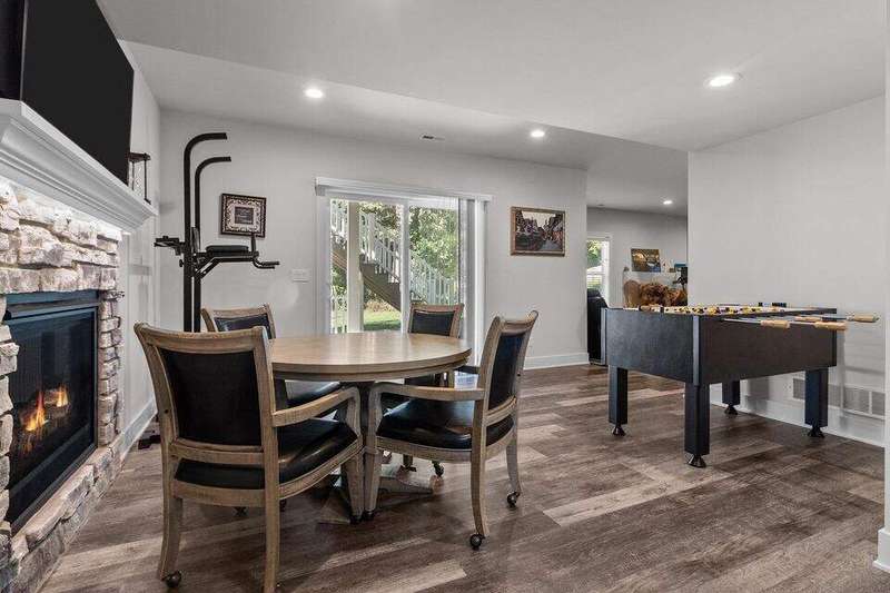 Nestled on almost 1/2-acre lot sits this beautiful fenced, secluded home built in 2020. 4 bedrooms, 3.5 baths. Beautiful kitchen with open concept living/dining, gas fireplace, luxury vinyl plank floors, walkout to the covered deck with Trex flooring and stairs leading down to another 2 patios-9x12 and a covered 10x15. Upper level has 4 bedrooms, master in-suite with double vanity, large shower and a walk-in closet. Another full bath that is shared and bedroom 4 has a walk-in closet. Lower level has a family room with fireplace two, a rec room and a full bath. A walk-out to the large yard with exterior lighting and a stone fire pit, professionally landscaped including irrigation system. Pavers on both paths and patio. Epoxy garage flooring and heated garage. 9-tvs, Offered furnished!