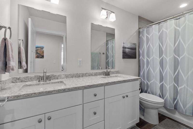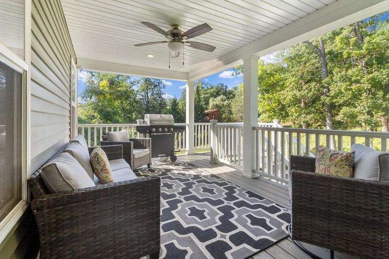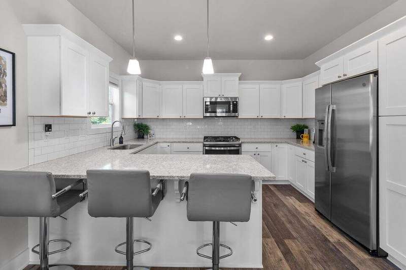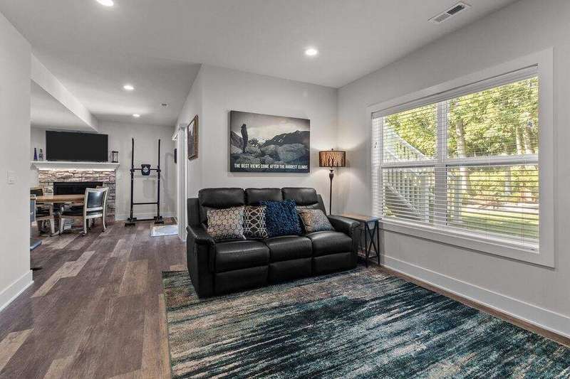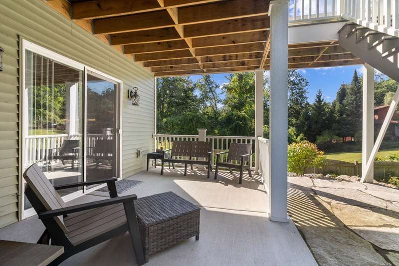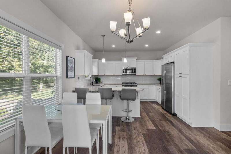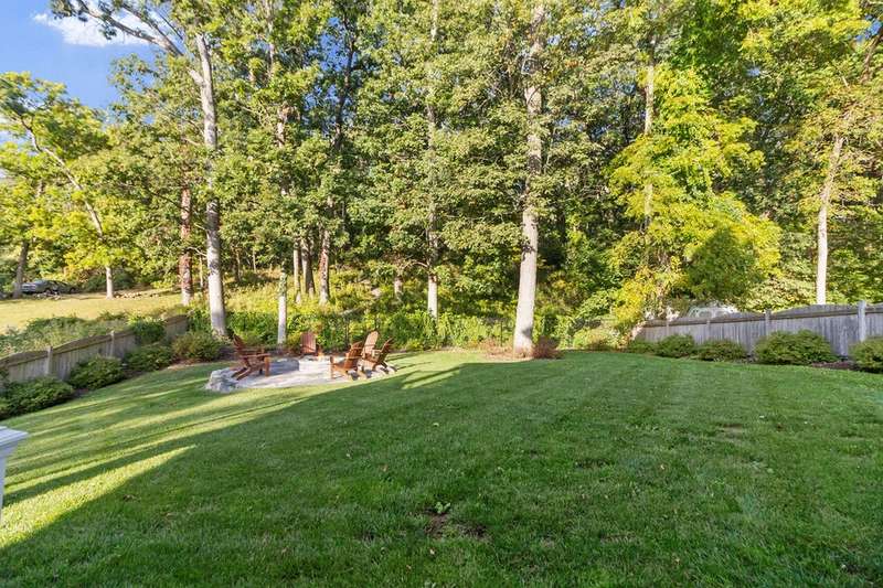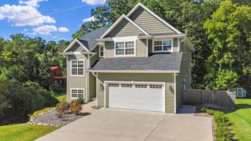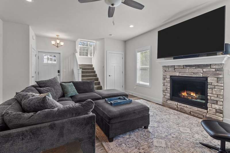 Nestled on almost 1/2-acre lot sits this beautiful fenced, secluded home built in 2020. 4 bedrooms, 3.5 baths. Beautiful kitchen with open concept living/dining, gas fireplace, luxury vinyl plank floors, walkout to the covered deck with Trex flooring and stairs leading down to another 2 patios-9x12 and a covered 10x15. Upper level has 4 bedrooms, master in-suite with double vanity, large shower and a walk-in closet. Another full bath that is shared and bedroom 4 has a walk-in closet. Lower level has a family room with fireplace two, a rec room and a full bath. A walk-out to the large yard with exterior lighting and a stone fire pit, professionally landscaped including irrigation system. Pavers on both paths and patio. Epoxy garage flooring and heated garage. 9-tvs, Offered furnished!