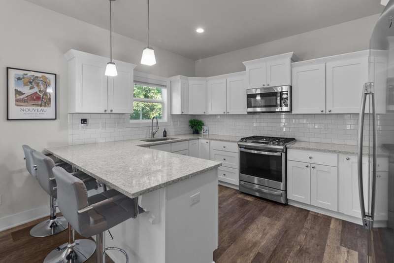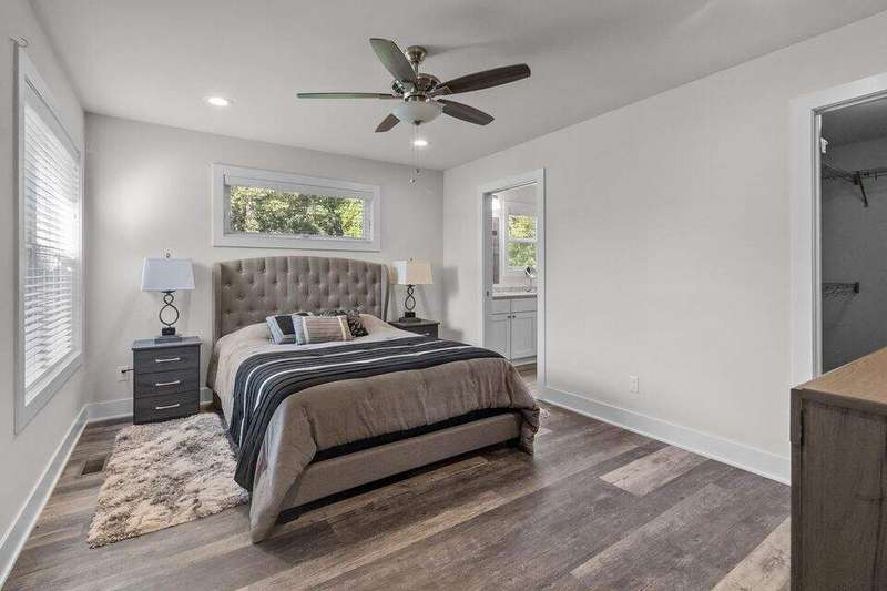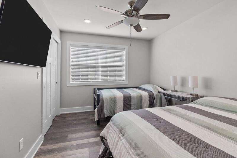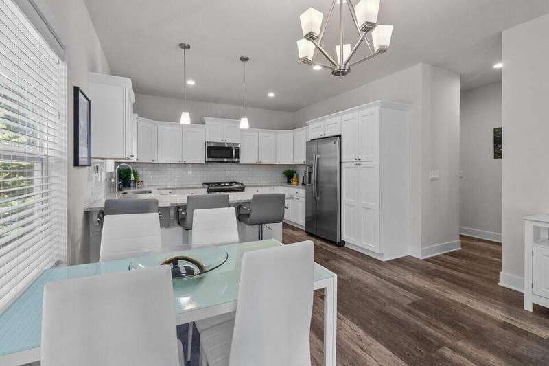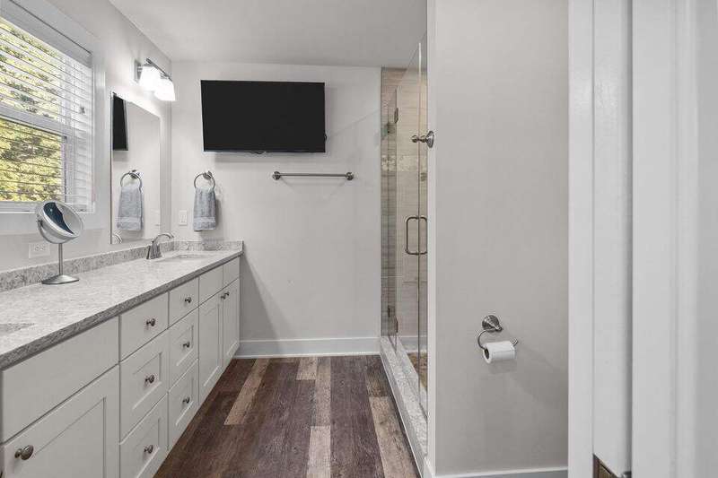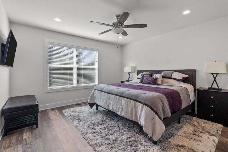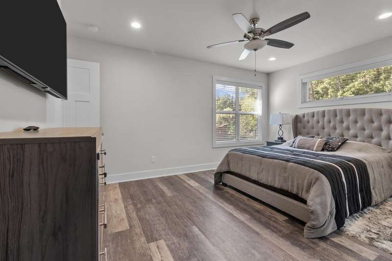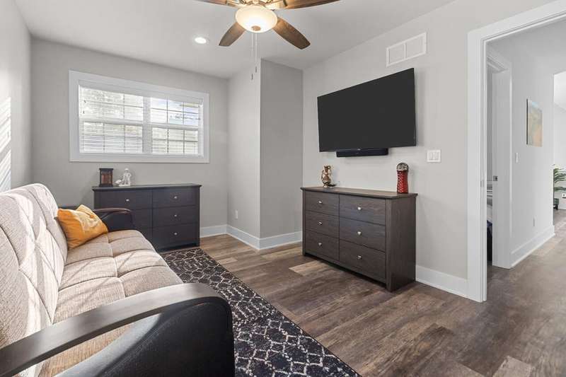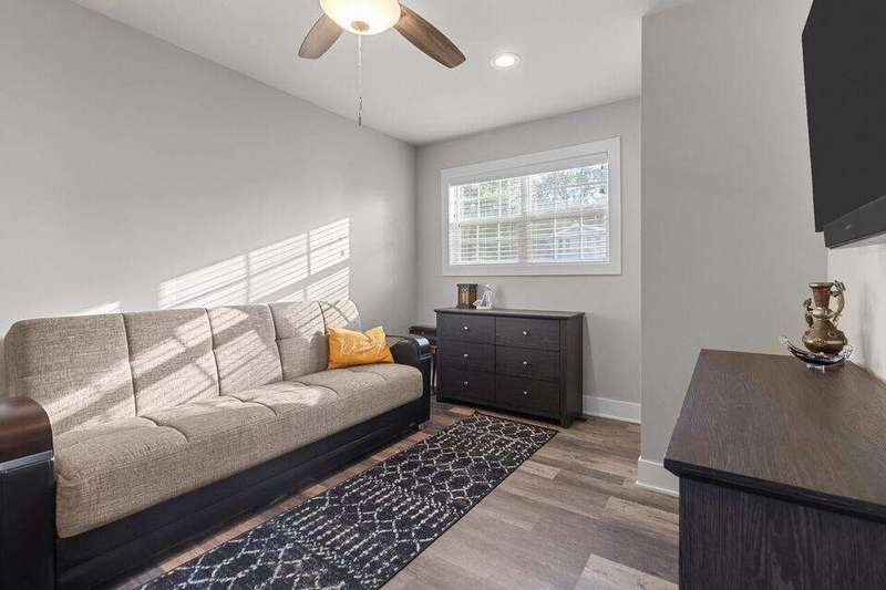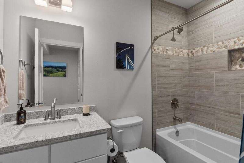 Nestled on almost 1/2-acre lot sits this beautiful fenced, secluded home built in 2020. 4 bedrooms, 3.5 baths. Beautiful kitchen with open concept living/dining, gas fireplace, luxury vinyl plank floors, walkout to the covered deck with Trex flooring and stairs leading down to another 2 patios-9x12 and a covered 10x15. Upper level has 4 bedrooms, master in-suite with double vanity, large shower and a walk-in closet. Another full bath that is shared and bedroom 4 has a walk-in closet. Lower level has a family room with fireplace two, a rec room and a full bath. A walk-out to the large yard with exterior lighting and a stone fire pit, professionally landscaped including irrigation system. Pavers on both paths and patio. Epoxy garage flooring and heated garage. 9-tvs, Offered furnished!