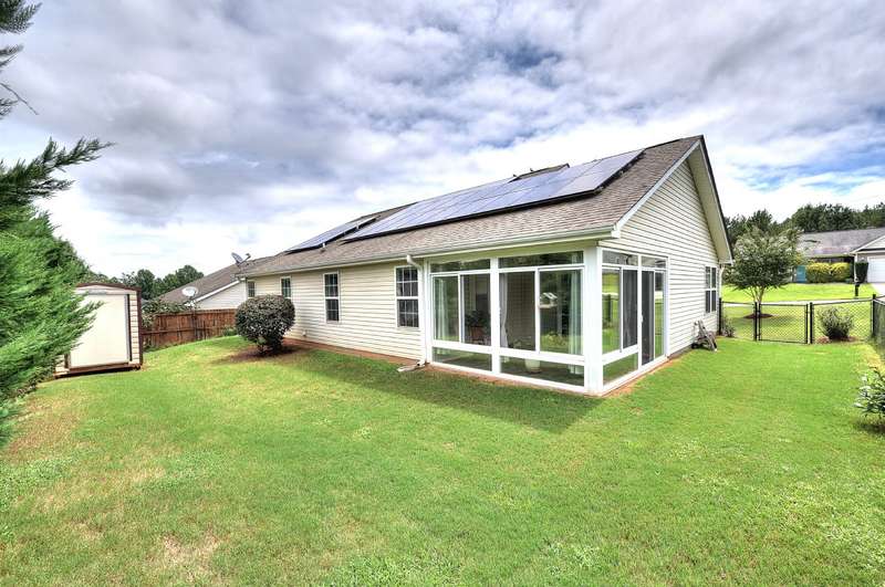 Your Dream Craftsman Awaits, Packed with Charm, Efficiency, and Smart Design! Imagine pulling up to a picture-perfect one-story craftsman with undeniable curb appeal?nestled in a prime location and thoughtfully upgraded for modern living. Now imagine it comes fully equipped with all appliances and solar panels, giving you energy efficiency and REAL SAVINGS from day one. This is more than a home, it's a smart investment in your future. Step onto the welcoming front porch and into a space that immediately impresses, vaulted ceilings, a cozy electric fireplace, and gleaming hardwood floors that flow seamlessly through the living, dining, and hallway areas. The kitchen is a true standout, offering ample cabinetry, generous counter space, a pantry, and direct access to a sun-drenched SUNROOM, perfect for morning coffee or unwinding while overlooking the fully fenced backyard. The owner's suite is tucked away through an elegant arched doorway, creating a private retreat with a tray ceiling, walk-in closet, and a spacious en-suite bath. Two additional bedrooms and a full hallway bath are located on the opposite side of the home, offering privacy and flexibility for guests, family, or a home office. Even the walk-in laundry room is designed with convenience in mind, featuring built-in cabinetry. The attached two-car garage adds extra value with a side yard door, window for natural light, and a utility sink, plus a backyard storage shed for all your tools and lawn gear. Located between Greenville and Spartanburg, this home offers easy access to shopping, dining, and top-rated Spartanburg County District 5 schools. Best of all, it's 100% USDA eligible, making it even more attainable. And, it's even better...Seller will pay off the remaining balance on the solar panels at closing, allowing the buyer to enjoy energy savings with NO SOLAR LOAN PAYMENT! The average monthly power bill from June 2024 to June 2025 was just $55 per month. Don't miss your chance to own this beautifully maintained, energy-smart craftsman home!