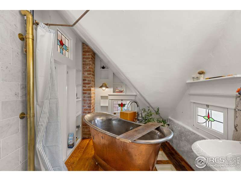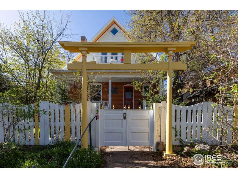 ONLY AVAILABLE FOR A LIMITED TIME - Built in 1904 and lovingly renovated using an artful combination of antique & reclaimed materials in unique & thoughtful ways. Environmentally sound & chemical free enhancements were chosen to create this serene haven, right in the heart of Boulder. Elevated from the street & backing to Mattie Dean Garden & the historic Columbia Cemetery for fabulous unobstructed Flatiron Views year-round & the magical feel of living amongst nature in an eco-oasis. If you're feeling spry, make sure you climb up the amazing treehouse and enjoy the views from 2 and 3 stories up. Built with reclaimed barn wood and stained glass windows, it is independently constructed so as not to interfere with the health of the tree. This prized location is within strolling distance to Alpine Modern for coffee, CU Campus for CU Buff home games and other popular events, Chautauqua Park for a hike or a show, and Foothill trails are only a quarter mile away. Stroll past Boulder Creek to Boulder's acclaimed Pearl St Mall for dining, shopping & entertainment and you'll be well positioned for enjoying the Sundance Film Festival. Gorgeous hardwood floors, lovely stained glass, transom and bay windows, restored woodwork, brass antique lighting, fixtures and hardware all add to the warmth & character. Natural light flows through numerous windows from the outdoors and also through cleverly placed art and stained glass between rooms & levels. There is so much to take in when touring this property, allow yourself adequate time as this is truly a one of a kind home in THE ideal location for living the quintessential Boulder lifestyle!