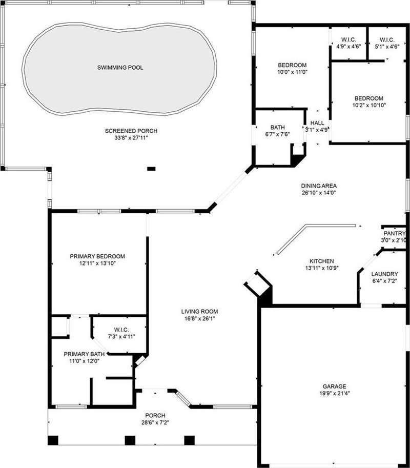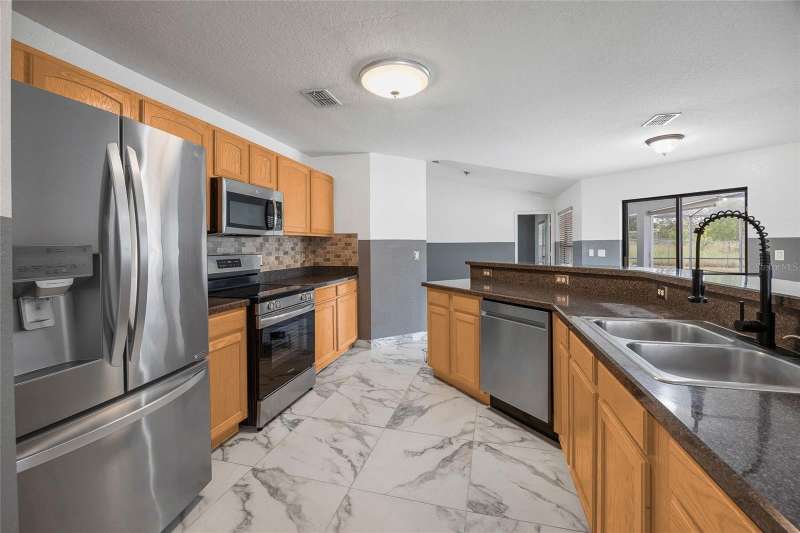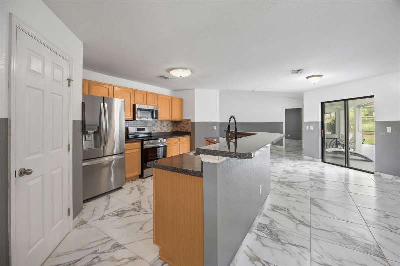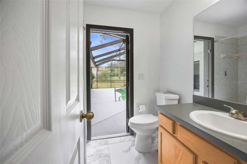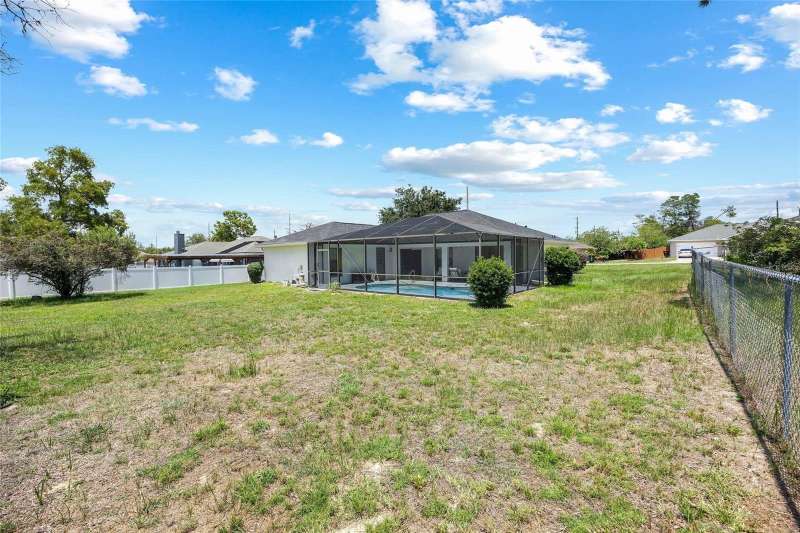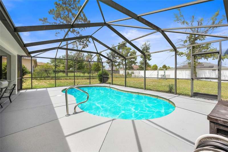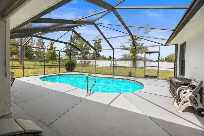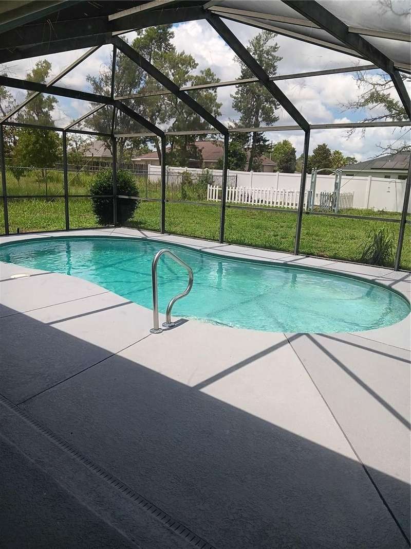 OWNER DROPPED PRICE $10,000. Great property and location with a POOL in a quiet neighborhood, SW Ocala Sandy Pines, no HOA, move in ready. This community is located off SW 49 Ave., lots of new construction all around this area. 3 bedroom, 2 bathroom residence with 1,632 square feet of living space on a 1/3 acre lot. Split floor plan with elegant ceramic tile floors throughout, changed less than 2 years ago. The master bath has a walking closet, a walk-in shower and soaking tub. Secondary bedrooms each with a walk-in closet. The kitchen has new stainless steel appliances. Home features an in-ground pool with enclosure and covered porch, it has a direct access door into the secondary bathroom. perfect for hosting or simply relaxing by the pool, a great indoor outdoor living . Pool pump was changed by the previous owner. Of course a convenient indoor laundry room. Two car garage with automatic door opener. The roof was changed in 2024, HVAC in 2018, water heater in 2020. New paint inside and outside the property just recently. Located less than 15 minutes to I-75, quick access to Gainesville, Tampa, Orlando, theme parks and beaches like Daytona. Close to parks, schools, shopping, restaurants, groceries stores, hospitals, and everything else you might need to make your life easy. Call to schedule a showing, you will not be disappointed. A must see !!