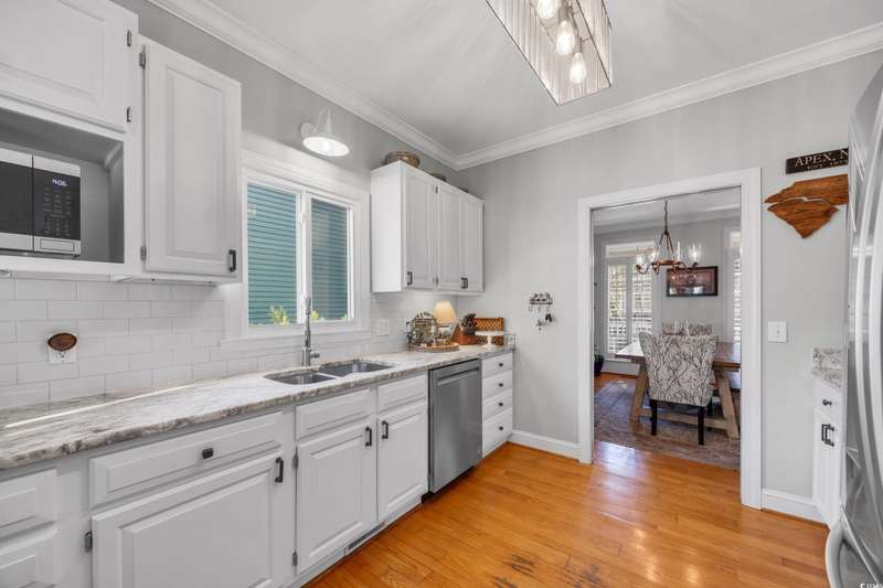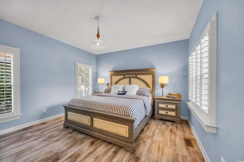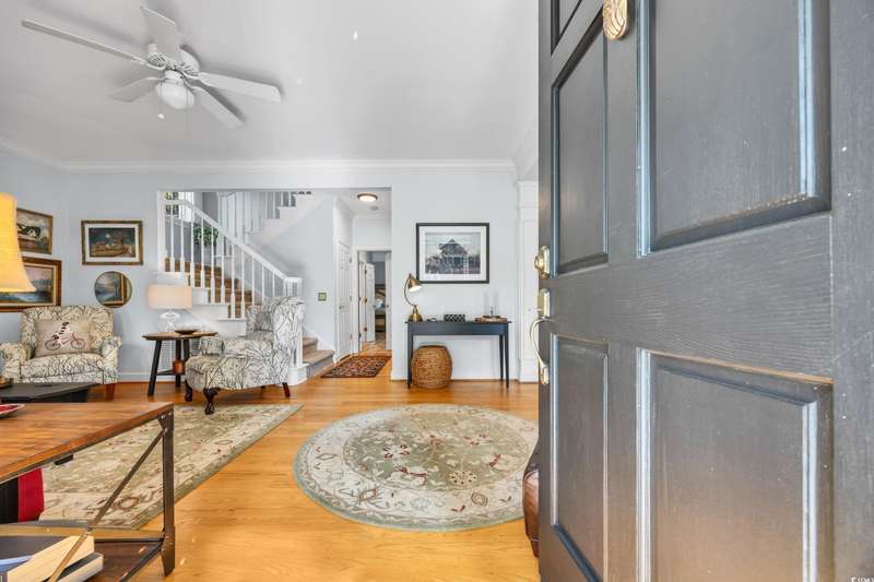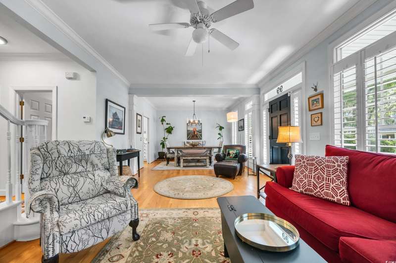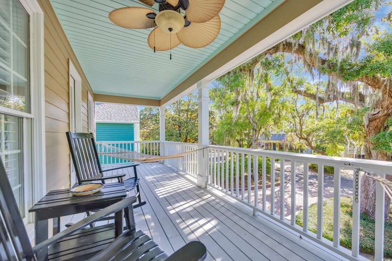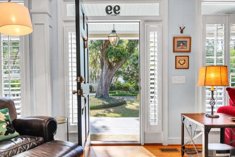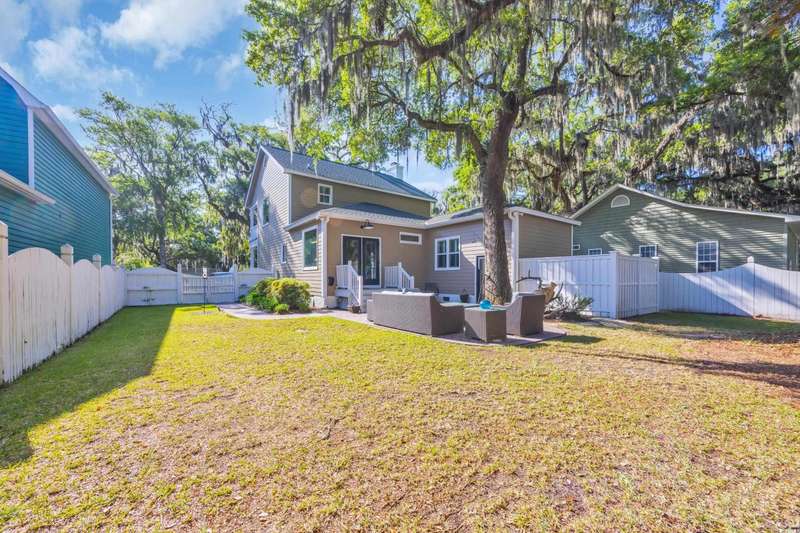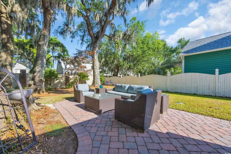 Experience the charm of Southern coastal living in this meticulously maintained 3-bedroom, 2.5-bath Low Country style home. Located in the sought-after gated Creekside community of Oak Lea in Pawleys Island, this property blends comfort, privacy, and thoughtful upgrades all within a neighborhood managed by its residents, not a third-party management company. Surrounded by stately Live Oaks in a peaceful, tucked-away setting, this home features freshly painted interiors and has been thoughtfully updated with a new roof, HVAC, windows, privacy fence, irrigation system, and a refreshed kitchen with stainless steel appliances and a sunlit breakfast nook. French doors from the breakfast nook open to a spacious backyard patio, perfect for outdoor dining and entertaining. The first-floor primary suite offers a generous walk-in closet and private bath, while upstairs, two additional bedrooms each provide direct access to a second-floor porch. Two included Pawleys Island hammocks make it an ideal spot to relax and take in the coastal breeze. Outdoor wicker furniture, rocking chairs, and a bluetooth music sound system on the patio are also included, transforming the backyard into your own outdoor retreat. Oak Lea residents enjoy exclusive amenities such as a marsh front pool, tennis and pickleball courts, a private boardwalk, and creek access for kayaking or enjoying the natural beauty from the community dock. Their low HOA fee includes all of these amenities plus cable, high speed internet and security gate. Homes in this highly desired neighborhood are rarely available, don’t miss your chance to experience Pawleys Island living at its best.