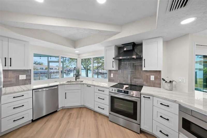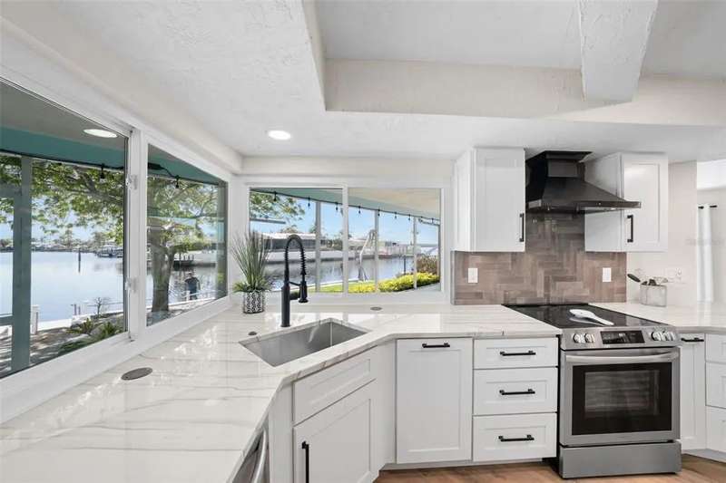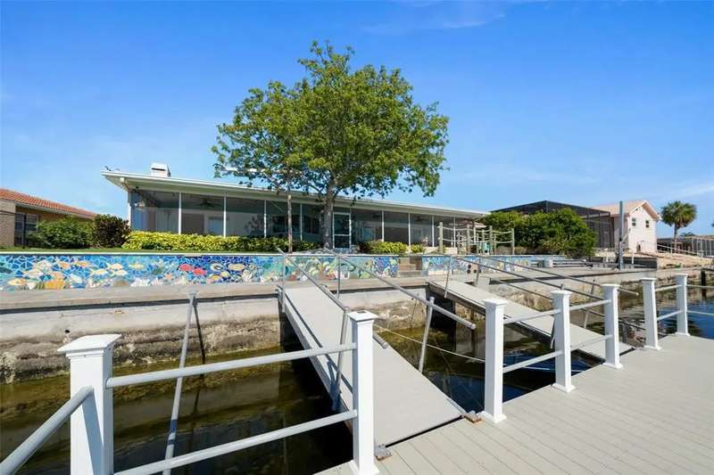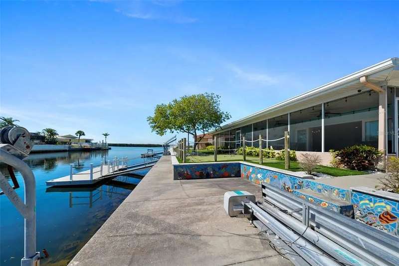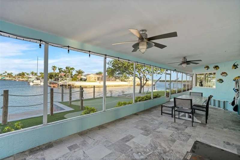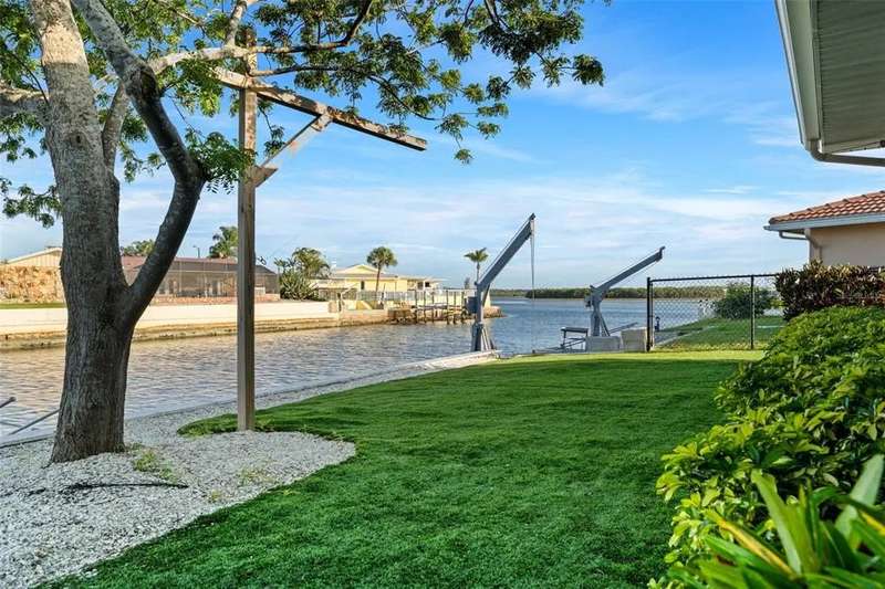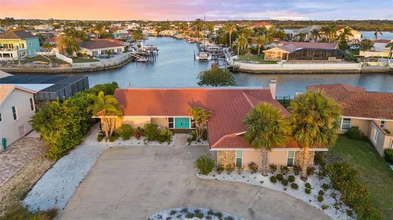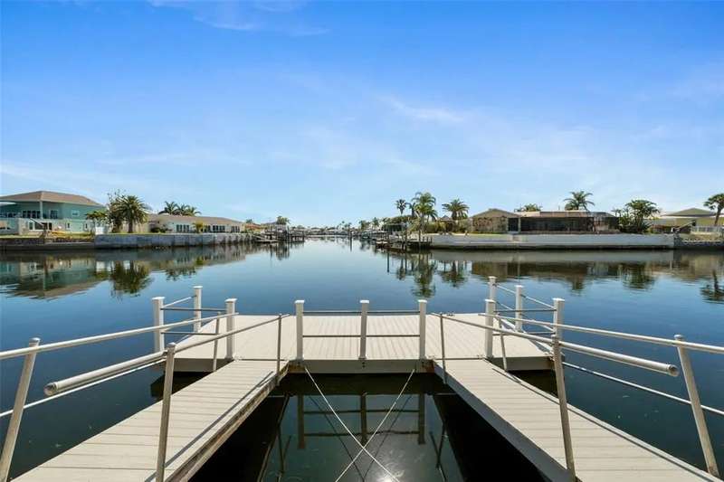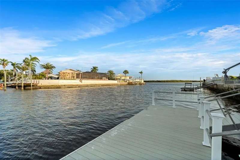 SELLER MOTIVATED & CAN WORK WITH BUYERS ON BUYING DOWN YOUR RATE!! Experience coastal living at its finest in this beautifully renovated waterfront home, nestled in the highly sought-after Gulf Harbors community. Enjoy direct access to the Intracoastal Waterway and Gulf—perfect for boating, beach days, and sunset views right from your backyard. Sitting at a rare 13 feet of elevation, the property remained virtually untouched by recent storms and includes an elevation certificate and assumable flood insurance for added peace of mind. Along 85 feet of pristine seawall, a wide, deep-water canal offers seamless Gulf access—ideal for boating enthusiasts. Inside, the home showcases high-end updates and features throughout. New flooring over a waterproof membrane, Frigidaire appliances, a Sharp microwave drawer, custom cabinetry, and elegant quartzite countertops elevate the kitchen and baths. Details like Moen fixtures, modern tilework, craftsman-style doors, a marble-surround wood-burning fireplace, and upgraded LED lighting with dimmers add style and comfort. Impact windows, sliding doors, and a reinforced garage door enhance safety and efficiency. Mechanical upgrades include 2022 HVAC systems, a hybrid water heater that cools the garage, new garage mechanics with wireless opener, a dedicated electrical sub-panel, and a full water softener/treatment system. Landscape lighting enhances the home’s curb appeal after dark. The outdoor space is built for waterfront living: power is installed for a future boat lift, ALREADY INCLUDED are components for a 10,000 lb lift and Jet Ski components. Plans for New Dock/Lift available. Fabulous OVERSIZED floating dock with two gangways and composite decking is perfect for kayaking or guest docking. A 4-hole putting green adds backyard fun, while drip irrigation keeps the landscaping low-maintenance and lush. Just minutes from downtown New Port Richey in a golf cart-friendly neighborhood, residents also enjoy exclusive access to the Gulf Harbors Private Beach Club—adding even more to this turnkey waterfront retreat.