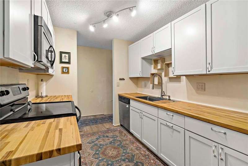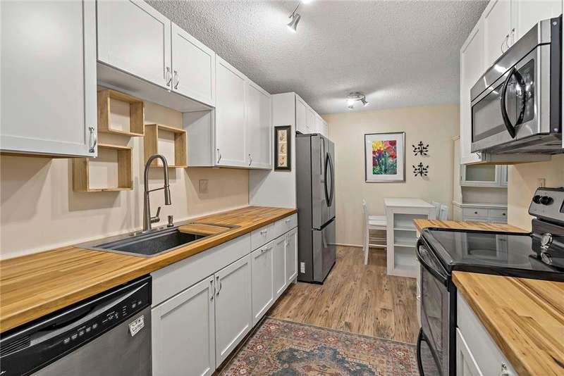 This well-maintained, main-level condo offers the perfect blend of comfort and convenience, featuring no stairs for easy access. The updated kitchen is a highlight, showcasing quality cabinetry, wood countertops, sleek stainless steel appliances, and durable LVT flooring. The spacious living room is bright and inviting, with newer carpeting and a walkout to your private patio, just steps away from miles of walking trails. The cozy bedroom offers natural light through a large window, while the full bathroom has a new vanity with a beautiful granite top. Additional shared amenities include an outdoor area with grill, sauna, indoor heated pool and underground parking, adding to the appeal and convenience of this affordable and move in ready home. Don’t miss out on this wonderful opportunity in a prime Burnsville location!