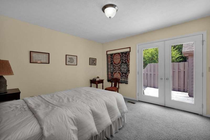 Exceptionally maintained and move in ready, this fantastic condo is located in the heart of the Village of Granville and offers comfort, quality, and scenic views! A charming brick walkway leads to the welcoming front porch. Inside, the vaulted great room features a corner gas fireplace, plantation shutters, abundant natural light, and a patio door opening to an expansive screened porch with peaceful views of the Denison Golf Club. Gorgeous hardwood floors flow throughout the main level. The well-designed kitchen includes custom cherry cabinetry, granite countertops, upscale appliances, a center island, and an adjacent eating area. A private side patio with fencing offers a serene spot for morning coffee or relaxing evenings. The attached garage includes a sealed concrete floor and provides convenient access. A formal dining room offers elegant space for entertaining. The spacious main-level primary suite includes access to the screened porch, a large walk-in closet, and a private en suite bath. A second bedroom and convenient first-floor laundry complete the main level's thoughtful design.The open staircase leads to a finished walkout lower level, offering impressive additional living space with a generous family room, third bedroom, full bath, and private brick patio?ideal for guests or multi-generational living. Additional highlights include excellent storage with shelving. Located just a short walk to downtown Granville, Denison University, the library, shops, restaurants, and community events. Easy access to Routes 16/161 & 37 for a convenient commute to Columbus. This is a truly special home in a prime location!