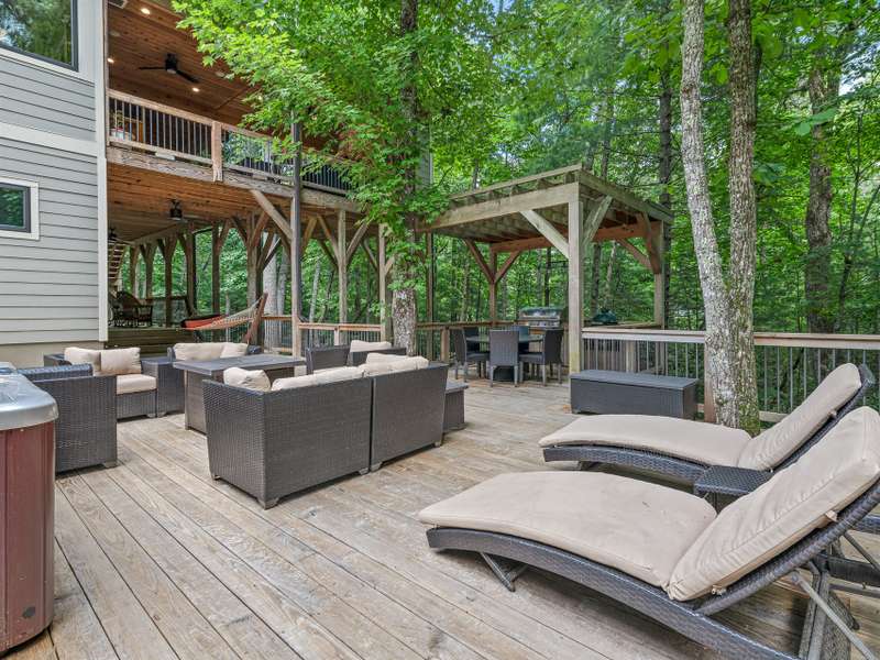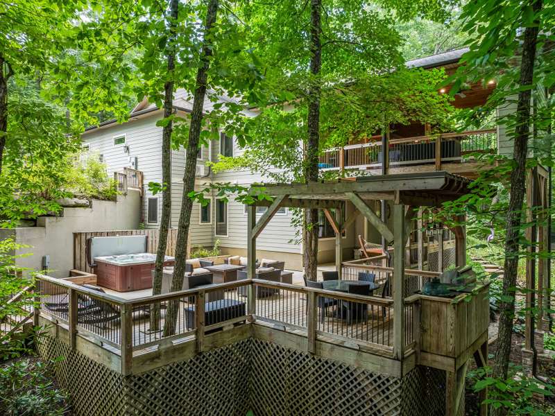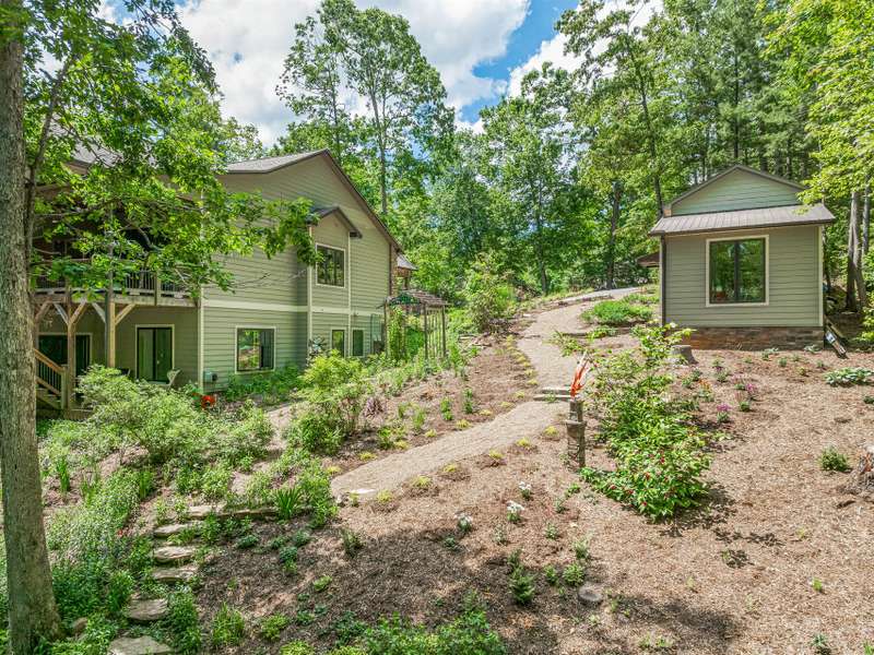 Discover elevated mountain luxury at 105 Blackberry Lane?a private retreat where sophistication meets serenity. Enter through a custom arched Italian door into a gallery-style foyer with soaring ceilings and custom lighting. Entertain effortlessly in the chef's kitchen, great room, and music nook and large second living area, or host memorable evenings on the tree-top covered deck with an Earth stone pizza oven and artisan wood-burning fireplace. Enjoy 2,400+ SF of outdoor living with a spa-grade hot tub, pergola grilling area, and forest view firepit deck. The primary suite offers a spa-inspired bath, private balcony, and infrared sauna. Most of the home was updated in 2016, and the separate storage building was also added in 2016. Curated gardens, stone paths, water features, and seamless indoor-outdoor living enhance the experience of this beautiful property. It's not just a home?it's a mountain sanctuary.