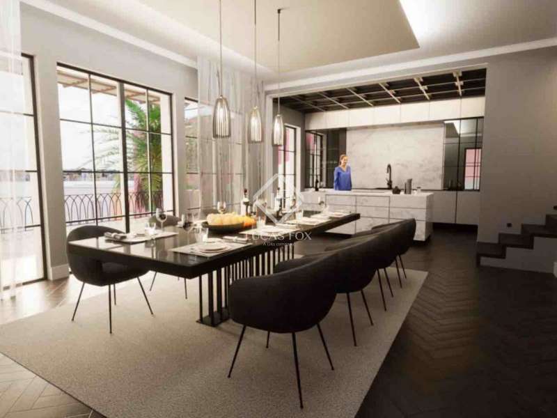 Lucas Fox Mallorca presents this new villa project located in the famous El Terreno district of Palma. Built on a plot of 692 m², the house offers all high-end services. Its slightly elevated position allows you to enjoy a pleasant view of the port of Palma and the sea. Spread over three levels, the ground floor houses two spacious master suites with private bathrooms and dressing rooms. These two suites open directly onto the outdoor terrace surrounding the vast swimming pool. On the first floor, you will find a fully equipped kitchen opening onto a beautiful dining room, itself connected to the living room, the whole opening onto a large 45 m² terrace, ideal for enjoying your meals while enjoying a unique view. On the same level there is a bedroom with bathroom and an office. An external staircase leads to an additional, completely independent bedroom with bathroom and dressing room. It also has a private terrace overlooking the garden. A second exterior staircase provides access to a roof terrace, specially designed to fully enjoy the panoramic view, share meals in the outdoor kitchen or relax in the sauna. On the lower part of the land, two vehicles can be parked under an aesthetic carport, perfectly integrated into the architecture of the property. The house is ideally located in the popular El Terreno area, within walking distance of shops, restaurants, the new marina, the renovated Paseo Marítimo and the centre of Palma. From this charming, bohemian-chic neighborhood, you can quickly access the most beautiful beaches on the west coast, its luxury marinas, and reach the international airport in less than 20 minutes. An ideal property to enjoy the gentle way of life of Majorca, its idyllic beaches, and its exceptional setting.
