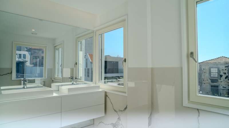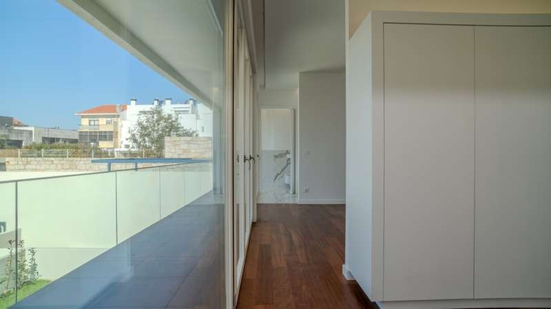 Fantastic new three-bedroom detached house on four fronts for sale in Leça da Palmeira. The property, with its high-quality finishes, generous areas, excellent sun exposure and large glazed windows, gives the house a unique light . Spread over three floors, on the first floor you'll find the social area comprising a generous living room and kitchen equipped with a wine cellar, a guest bathroom and access to the outdoor garden area. On the second floor you'll find the intimate area with three ensuite bedrooms. There is also a garage for four cars and a laundry room in the basement with direct elevator access to the upper floors. Inserted in a private condominium made up of five luxury villas, providing maximum comfort, security and privacy. Located in a privileged area with a wide range of shops, services, the Leixões Marina, the beach and restaurants. CHARACTERISTICS: Plot Area: 332 m2 | 3 574 sq ft Deployment Area: 147 m2 | 1 582 sq ft Building Area: 334 m2 | 3 595 sq ft Bedrooms: 3 Bathrooms: 4 Garage: 4 Energy efficiency: A FEATURES: 3 Bedroom Villa Private Condominium Elevator 3 Suites exterior Area: 185m2 Balcony: 15.85m2