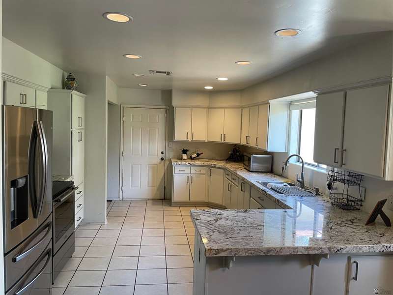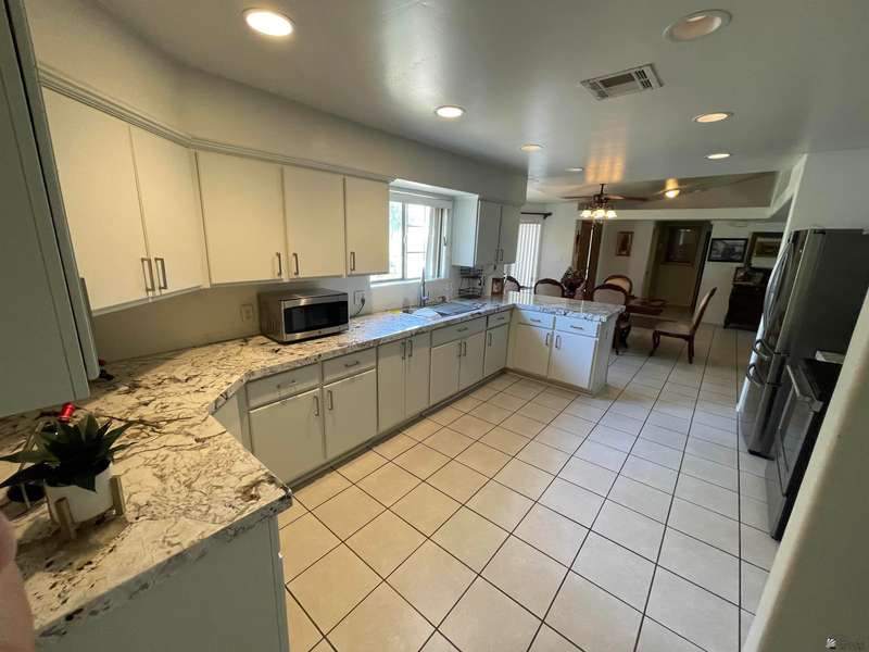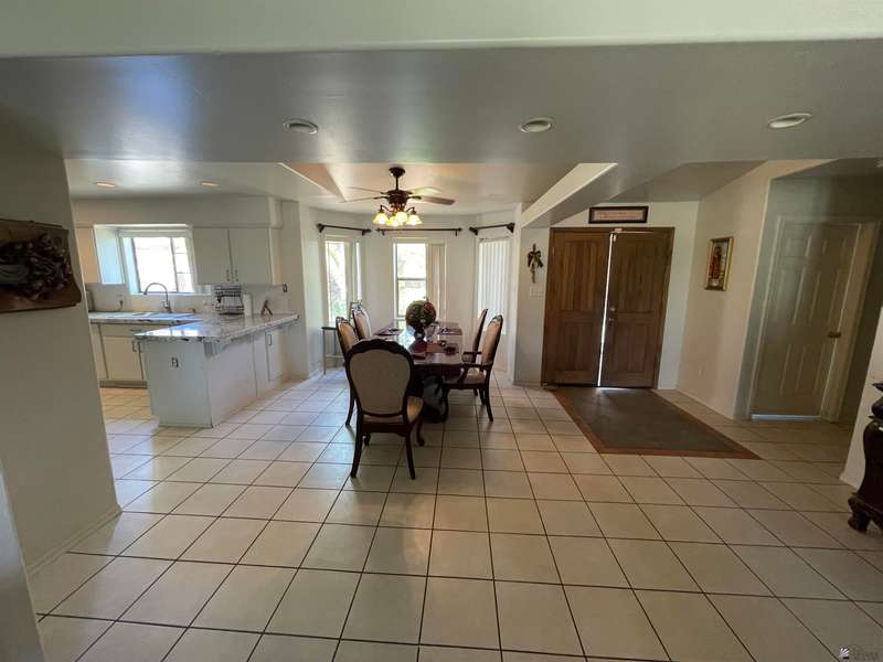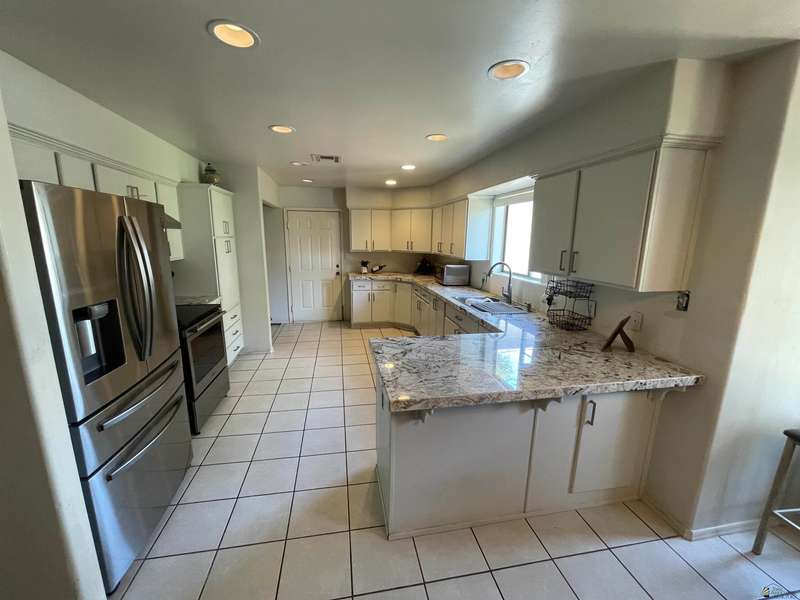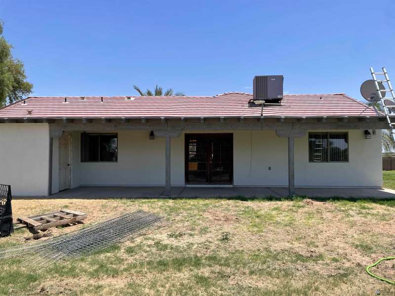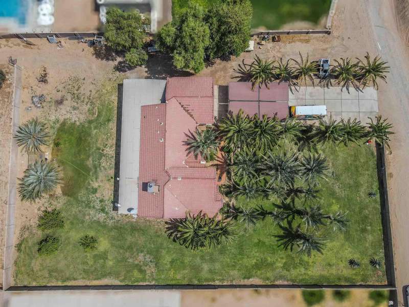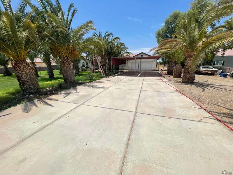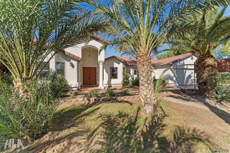 Make way for your future home boasting almost two acres of land dotted with mature date palms and lush lawn in the front yard. Measuring 1.91 acres, this property offers more than enough room for you to create your dream oasis, house all sorts animals, host unforgettable gatherings or simply enjoy the tranquility of rural living. Extended concrete pad with a large free-standing carport will keep your vehicles and desert toys safe from the sun all year-long. Remodeled kitchen with granite countertops and stainless steel appliances, including refrigerator, add a touch of elegance to the space. Beautiful bay window in the dining area and inside one of the guest bedrooms are fun additions to the home's open concept layout. Enclosed storage space behind the garage could be converted into a small workshop. Schedule your showing today, Must See!