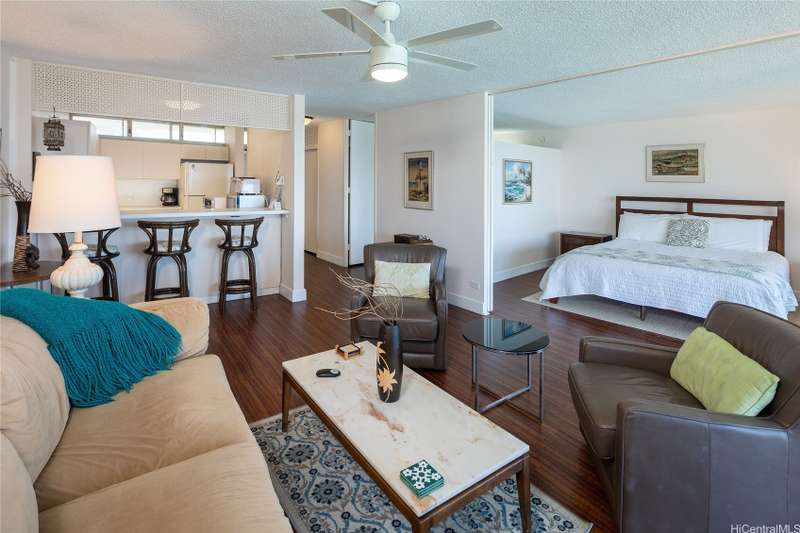 The Gold Coast Living you've been waiting for - Direct Ocean and Beach Front in the iconic Sans Souci Apts! Highly desirable 1 bed, 1 bath, 1 parking in the most amazing location. Currently operated as a 30 day vacation rental which gives you options - Make Sans Souci your home or visit Hawaii on your schedule and rent your home for the income while you travel the world.