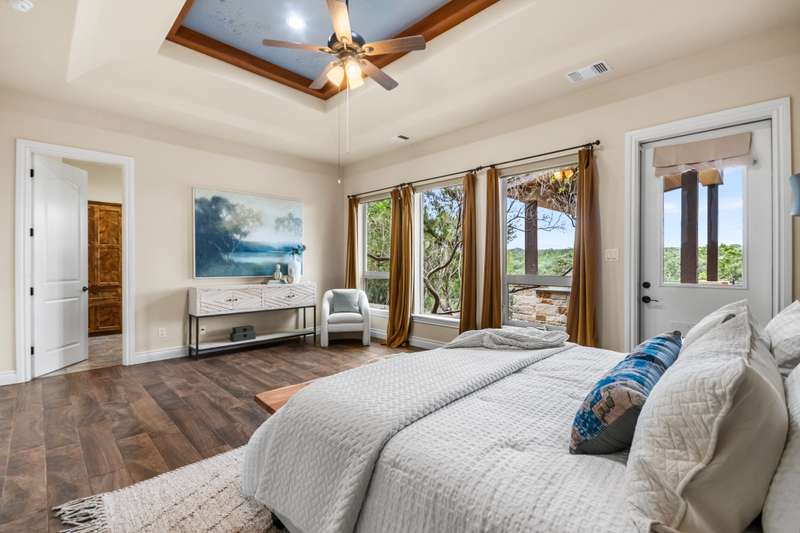 Experience all that Cordillera Ranch has to offer and enjoy the beautiful views at this exquisite one story ranch style home located close to the Guadalupe River Park. This property sits on just over 2 acres and has 4 nice size bedrooms and 2.5 bathrooms and a 3 car garage. As you walk in the home you are greeted with a wall of windows to take in the spectacular hill country views, a floor to ceiling stone fireplace with built in cabinets on each side, central vacuum, a large entertainer's kitchen with gas cooking, double ovens, an island, and eat in bar top. The enlarged outdoor covered patio is impressive. Equipped with an outdoor fireplace, misting system, designated kitchen for grilling, and plenty of room to create an additional outdoor cozy living space. The location of this property is equipped with city water and sewer. Come and make this house your home. - 11/10/2025 3:16:36 AM