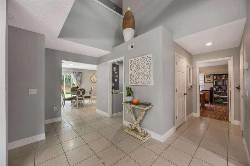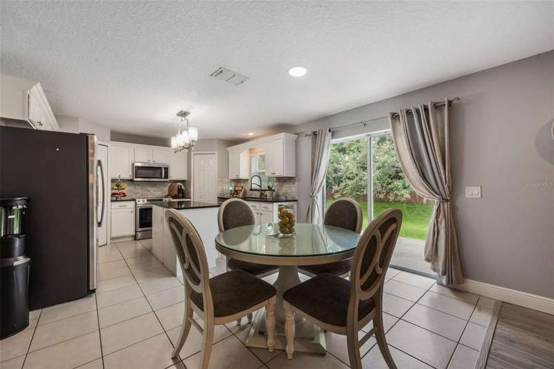 Under contract-accepting backup offers. One or more photo(s) has been virtually staged. This well-kept home proves that smart layout, solid care, and a great location are what matters most. Tucked away in a quiet, established community shaded by mature oaks, it offers the perfect blend of flexibility and everyday convenience - all with low HOA fees. Step inside and you will find a clean, move-in ready space with room to grow. The original owners have lovingly maintained and thoughtfully updated this home, and are now downsizing. It is ready for its next chapter. The LAYOUT is ideal for those who crave flexible space; DOWNSTAIRS offers a versatile room that works nicely as an office, guest space, or fifth bedroom; a half bath, dining room/living room, laundry, family room, eating area and a kitchen. UPSTAIRS, 4 bedrooms, two full baths, and a generous loft with Travertine floors throughout, complete the upper level, offering plenty of room for family or guests. New Roof (2023), freshly painted exterior and partial interior (5/25), stylish new lighting, new Google Nest Learning Thermostat. The heart of the home, the KITCHEN, was beautifully renovated in 2020, with new cabinets, granite countertops, updated appliances, a center island, and two walk-in pantries. Whether you are cooking for two or a crowd, this space just works. A window over the sink frames a peaceful view of the tree-lined retention pond - no rear neighbors, just quiet privacy. PRIMARY SUITE: Upstairs, the spacious primary bedroom is a standout, offering room to accommodate a sitting area, office space, or home workout area. Bath: is impressive and modern with a roomy, spa-inspired shower with its 2 rainfall shower heads and sitting bench. Closet: Large L-shaped, walk-in closet complete with built-in shelving, shoe racks and accessory storage. In a time when many neighborhoods feel crowded, this community stands out with well-spaced homes that offer a true sense of privacy and separation. Minutes from shopping, dining, churches, major roads and activities. Apopka is one of Central Florida's top destinations for outdoor recreation, with beautiful landscapes of lakes, springs and natural land areas to get away and explore the best of nature.