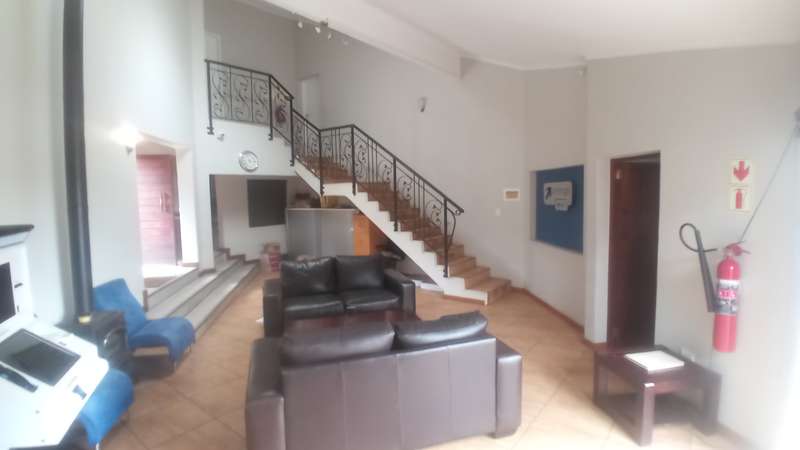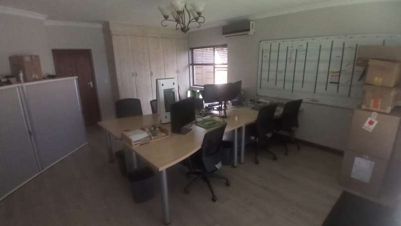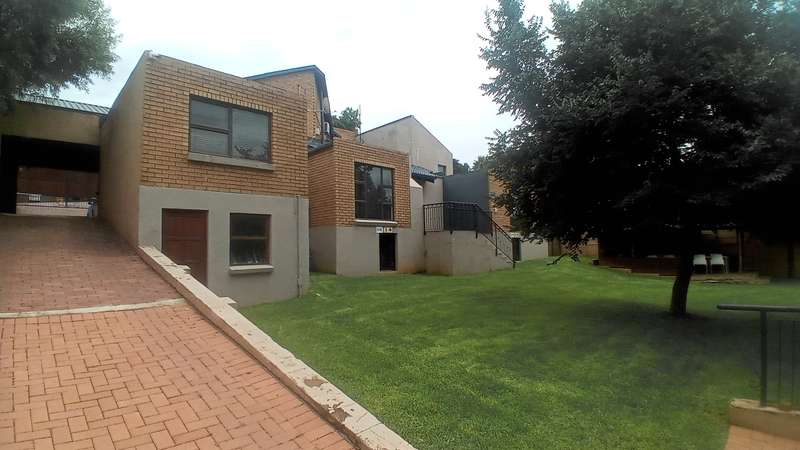 Designed to delight, built to endure. Drive out today and be charmed! This wonderful homme is located in a sought after area of Zwartkop which is currently being utilized as an office space however, the property can easily be converted back for residential use. On entering this beautiful home you are welcomed by the bright and inviting double volume living/dining area to the left(currently the waiting/demo area). To the right is the delightful kitchen with engaging wood cabinets and counter tops, a gas hob with an eyelevel electric oven, a pantry and a separate scullery. Adjacent to the living space is another separate sitting area as well as a walk in storeroom(currently a tech office and server room). The living area has a sliding door which opens onto a large and lovely patio which has a built in braai. This overlooks the lush garden where there is also a separate lapa which is perfect for entertaining. Downstairs there is an additional 2 bedrooms as well as a bathroom and guest toilet. The 1st of these rooms would be a guest bedroom with an en-suite bathroom(currently a support office with staff bathroom), The 2nd could either be a TV or play room or alternatively an additional bedroom which has a guest toilet.(Currently the boardroom). Upstairs offers 3 additional bedrooms, 1 of which is the existing master bedroom with an en-suite bathroom offering a shower, basin and toilet. The other 2 are currently the project office and a meeting room however could be 2 additional bedrooms and a possibility for an additional bathroom. Additional features of this amazing home include the basement storage areas as well as the 2 additional and large storage rooms with added potential as well as the double carport out back and the double garage with a drive through garage to the back yard. There is an alarm system and electric fence for that extra piece of mind. An exceptional property which is strategically located close to all amenities. This convincing home is full of potential with great opportunity. Call this minute to view!