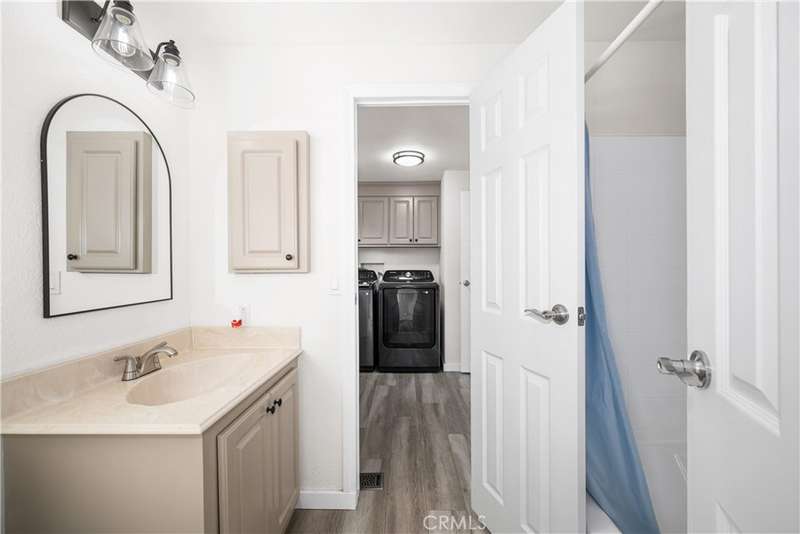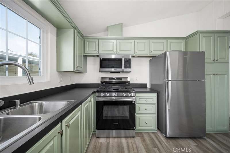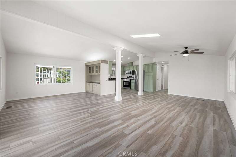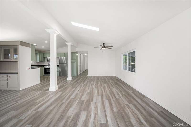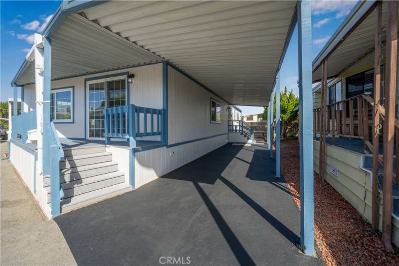 Welcome to a bit of Paradise! This beauty is situated in one of Southern California's premier 55+ active communities. This elegant home has been lovingly remodeled with no expense spared. Gourmet kitchen with a New Samsung gas stove, New Whirlpool stainless steel 2-door refrigerator, New Samsung Dishwasher, New Dual Stainless Steel Sink with high-rise faucet. Home has vaulted ceilings, multiple skylights, new ceiling fan and an open floor plan. Gorgeous new wood plank flooring throughout enhances the beauty of this special home! Custom dining room hutch with glass inset doors to view your special collectibles. Spacious main bedroom with a remodeled bath with his and her sinks, and spacious countertop, and a new over-sized walk-in shower. Custom front porch to view those wonderful sunsets! Freshly coated covered carport with room for multiple vehicles right next to your over-sized, side door access. Shed also located on the property. Make this place your home before it's gone! Space rent is $1,650 per month, Guard gate is $64.74, trash is $32.05 per month, plus buyers pays their own gas water and electric.