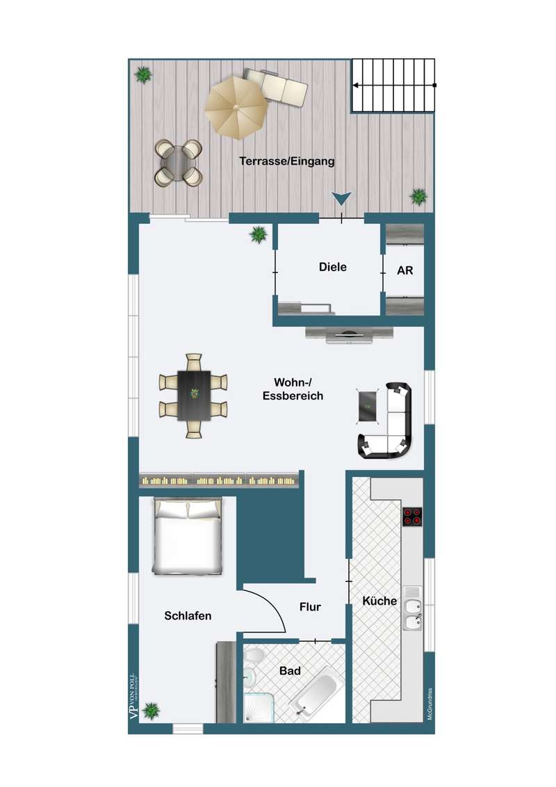 Welcome to your new home - a well-kept 2-room apartment, ideal for singles or couples who appreciate urban living. The apartment is located on the second floor of a solidly built detached house and offers approx. 80 m² of living space. The well thought-out floor plan creates a pleasant feeling of space. The entrance area leads into the open-plan living and dining area, which is bright and inviting thanks to the large windows. The separate kitchen offers plenty of space for modern kitchen appliances and is fitted with high-quality equipment. The bedroom is generously proportioned and offers enough space for a double bed and a large closet. The interior bathroom has a shower and bathtub; there is also a washing machine connection. Special highlights: A southwest-facing terrace invites you to relax in the evening. Windows with multiple glazing ensure good insulation and a pleasant living climate. Location: The property is located in an attractive, mature residential area with excellent public transport connections. Shopping facilities, doctors and schools are in the immediate vicinity; the city center, parks and leisure facilities can be reached quickly. Summary: Centrally located, with a functional floor plan - perfect for people who appreciate comfort and proximity to city life. Please understand that a tenant self-disclosure by e-mail to me is required before each viewing. Thank you very much!
