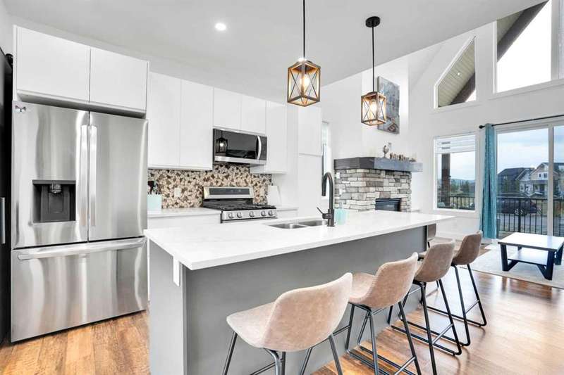 Welcome to 44 CottageClub Lane, a 2022-built home that combines modern craftsmanship with thoughtful features designed for comfort and convenience. Offering a FINISHED BASEMENT, WINDOW COVERINGS THROUGHOUT with some TINTED WINDOWS, and inviting outdoor living spaces with a FRONT PORCH, BALCONY, AND BACKYARD DECK, this home is ready for you to settle in and enjoy. The backyard faces north, creating a great setting for summer BBQs, while the south-facing front porch offers a bright, welcoming entry. As a bonus, the sellers are including the furniture and decors so it's truly move-in ready. Inside, tall windows fill the home with natural light, enhancing the open-concept main floor. The kitchen features a KITCHEN ISLAND WITH QUARTZ COUNTERTOPS and a GAS STOVE, blending style and function for daily living and entertaining. Upstairs, the primary bedroom offers an ENSUITE BATHROOM, WALK-IN CLOSET, AND PRIVATE BALCONY to relax and unwind. LUXURY VINYL PLANK FLOORING and modern finishes flow throughout the main and upstairs levels, creating a space that is both practical and stylish. The basement comes with 2 bedrooms,a recreation/family room, and a full bathroom. CottageClub residents enjoy a gated, year-round community just 20 minutes from Cochrane. Amenities include the 11,000 sq. ft. Recreation Centre with swimming, fitness, library, and community spaces, along with outdoor features such as beaches, docks, tennis and pickleball courts, hot tub, and trails. With its welcoming design, added features, and access to an exceptional community, 44 Cottage Club Lane is a perfect place to experience the best of lake living in every season. Come and see to appreciate.