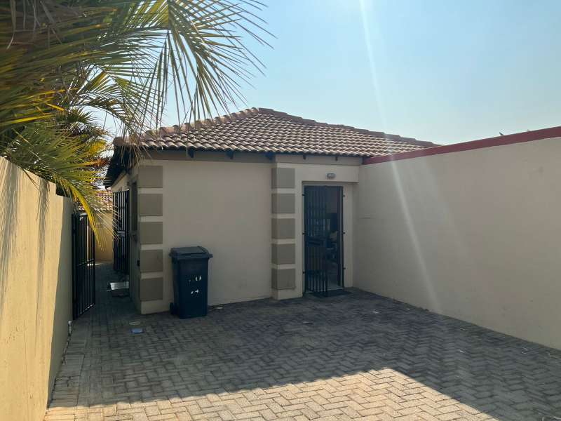Modern 3-Bedroom Home in a Secure Estate Welcome to this beautifully designed 3-bedroom, 2-bathroom home nestled in a sought-after estate. Perfectly blending comfort and functionality, this residence offers spacious living areas ideal for both relaxation and entertaining. The open-plan layout flows seamlessly from the modern kitchen into the lounge and dining area, extending out to a private garden complete with a built-in braai – perfect for family gatherings and weekend entertaining. The three well-appointed bedrooms provide ample space, with the main bedroom featuring an en-suite bathroom for added convenience. A second bathroom serves the remaining bedrooms, ensuring comfort for family and guests alike. Additional features include a double garage with direct access to the home, ample storage, and the peace of mind that comes with living in a secure, well-maintained estate.