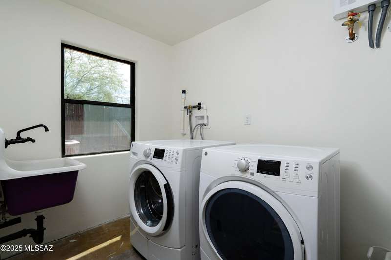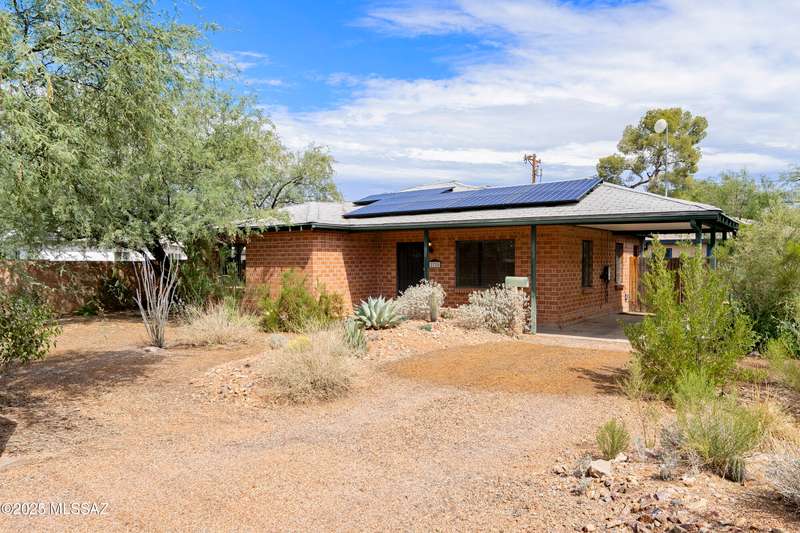 Charming 3 Bedroom home steps away from La Madera park. An all electric green home featuring an owned solar system, energy efficient heat pump installed in 2025, tankless hot water heater, newer energy star appliances, newer laundry-to-landscape greywater system and a charger for your electric car. Ceramic tile and cork flooring throughout. Landscaping and water harvesting professionally designed and installed in 2022 supporting native and drought tolerant plants. A low maintenance and eco-friendly retreat. Ideal Central location right on the Treat Bicycle Boulevard with easy access to the Loop. This is a one of a kind home, not to be missed!