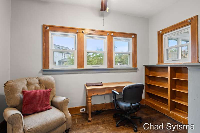 This straightforward home on Grand Rapids NW side is packed with a great list of features for easy everyday living. The main floor offers a large kitchen, living and dining rooms plus an office. The four beds upstairs offer extra flexibility for guests or additional office space. Step through the kitchen slider to the deck overlooking the huge, fenced yard. Tons of space for pets, play or gardening. The attached 2 stall garage keeps your feet and cars clean when the snow flies and there's extra storage opportunities in the shed. Replacement windows, 10-year-old high efficiency furnace, central air and a clean, dry basement - all just steps away from a great breakfast at the Westsider or your favorite grill items from Lewandoski's.