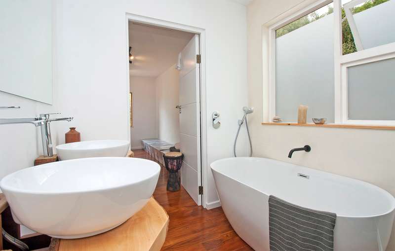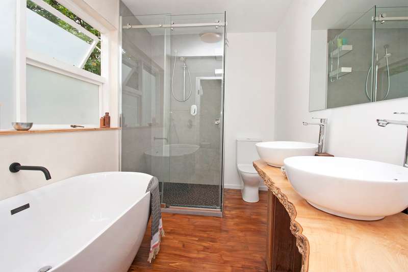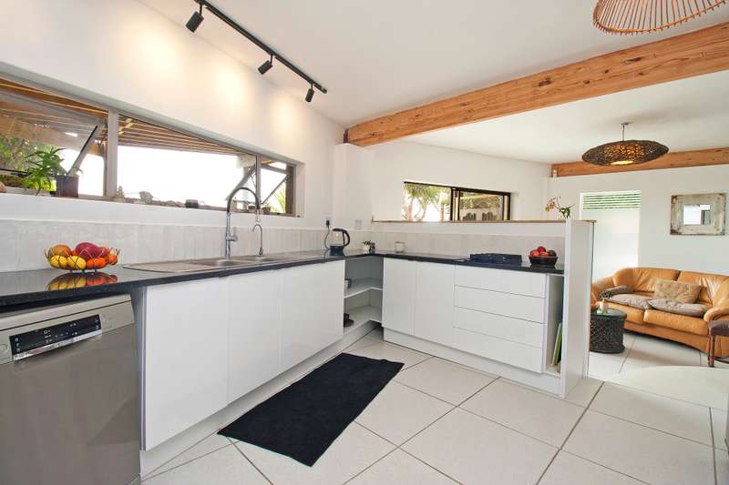 Set on the Scarborough mountainside, this three bedroom home offers sweeping sea views and a thoughtful layout designed for comfort and laid back living. The upper level is the heart of the home, featuring a spacious main bedroom with a full en suite bathroom with freestanding bath and rare wood vanity. The open-plan lounge flows onto a sheltered view deck, providing the perfect space for entertaining or soaking in the tranquil surroundings. There is also a second bedroom upstairs or office space which connects seamlessly to the lounge and guest bathroom. Downstairs, the modern kitchen takes center stage with sleek black granite countertops and an open-plan design that connects seamlessly to the dining area and a cozy second lounge. This level also offers a bedroom with its own shower and basin, along with easy access to a guest toilet. Step outside to discover a private, landscaped garden with natural stone elements and tranquil shaded spaces to unwind. With a single garage and parking for up to five cars, this home blends luxury, practicality, and natural beauty into a truly unique offering. This versatile home can easily be separated into two units. A must to view!