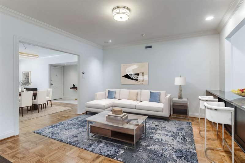 Designed by the legendary architect George Dahl, the Imperial House is an iconic residence Behind the Pink Wall epitomizing refinedliving. This move in ready condo seamlessly blends modern updates with the buildings historic charm, offering sophistication and comfortin every detail. From the grand lobby, adorned with sparkling chandeliers and polished marble floors, to its thoughtfully designed interiorsthe Imperial House exudes elegance and sophistication. Spanning 2, 276 sq. ft. the condo features light filled, open concept living spaceswith serene treetop views. It includes 2 bedrooms, 2.5 baths, spacious formals, and a custom study with a wet bar. The gourmet kitchen,adjacent to a second living area, is perfect for both everyday living and entertaining. The split bedroom layout ensures privacy, with twoensuite bedrooms. The luxurious primary suite offers a spa-like bath, a spacious walk-in closet and a sophisticated vanity alcove a perfectretreat for styling and preparation. Additional highlights include a laundry area, 917 square foot storage room, with 298 square feet offinished space with a wall unit HVAC not included in the square footage. The property also boasts a recently refinished pool, two garage spaces and an HOA that covers all utilities, electricity and maintenance. This home offers unparalleled comfort and convenience, ideally situated near Dallas premier shopping and dining destinations, including Preston Center and NorthPark, its exceptional location ensures everything you need is within easy reach. HOA fee COVERS ALL UTILITIES (EXCEPT INTERNET), TRASH SERVICE, INSURANCE (EXCLUDES CONTENTS) AND GROUND MAINTENANCEin addition, a brand-new roof was installed on the building in 2023. The units HVAC system was replaced in the past year for added peace of mind. The building pool was recently resurfaced and is maintained by the HOA. PLEASE NOTE, PHOTOS ARE STAGED.