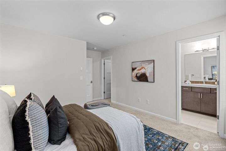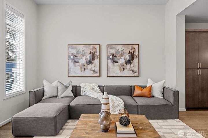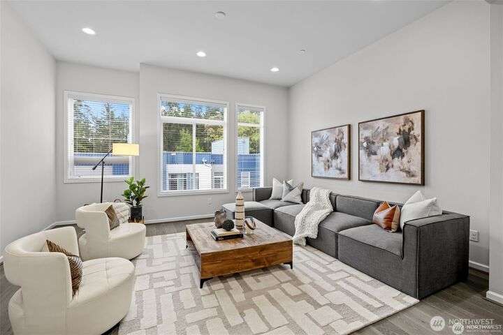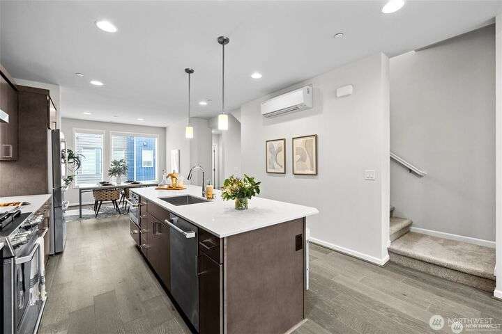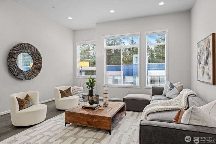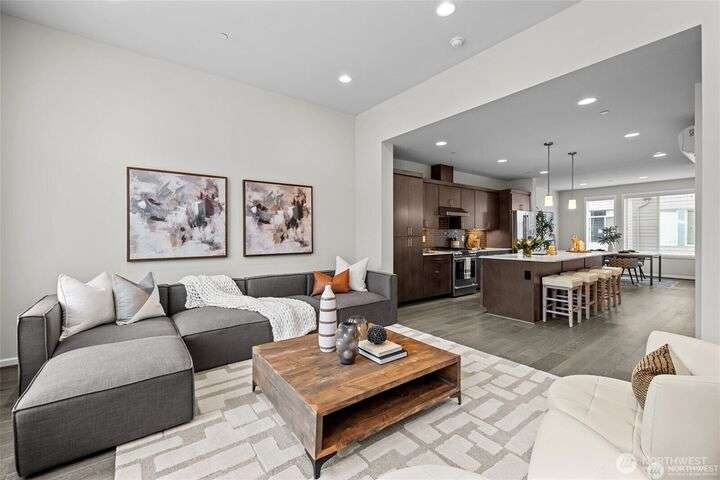 Stunning 2-bedroom townhouse by Taylor Morrison, ideally situated in the highly sought-after Kirkland/Juanita community. Thoughtfully designed w/ modern finishes and an open-concept layout, this home is perfect for both entertaining & everyday living. The expansive chef’s kitchen features stainless steel appliances, a gas range, pull-out shelving, abundant soft-close cabinetry, and generous quartz counter space. Enjoy seamless indoor-outdoor living on the rooftop deck—ideal for relaxing or dining al fresco. A spacious 2-car garage with EV Charger, extra storage & convenience. Located near Lake Washington, local parks, dining, and within the top-rated Northshore Schools, this home offers the perfect blend of comfort & style. No Rental Cap.