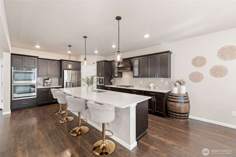 PRICE DROP! Discover Maple Hills, a premier community with upscale ambiance and private parks. This elegant 2019 home, located in quiet dead-end (cul-de-sac), features a grand foyer with soaring ceilings, a modern kitchen with a spacious quartz bar, soft-close cabinetry, and versatile living spaces, including a formal living room and upper family room—ideal for entertaining. Enjoy two gas fireplaces, including one on the backyard patio, a 95% high-efficiency furnace, Ruckus network, and tankless water heater. The expansive layout offers luxurious finishes, a two-car garage, walk-in closet, pantry, and premium laminate flooring for ultimate comfort and convenience.