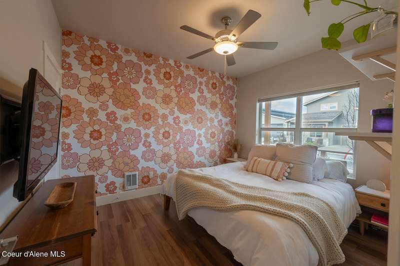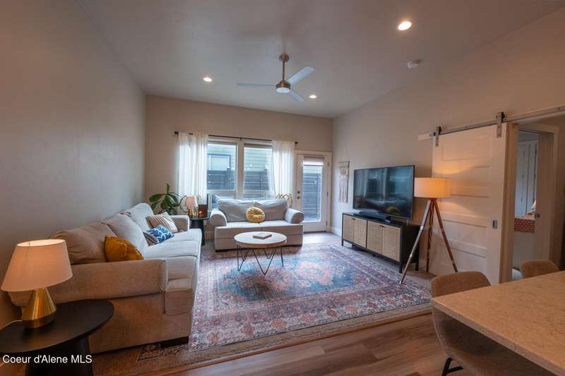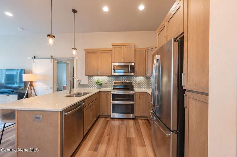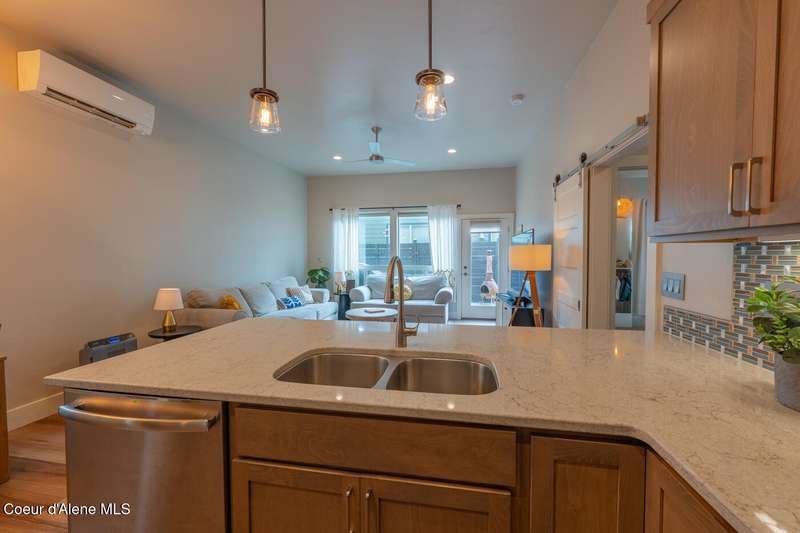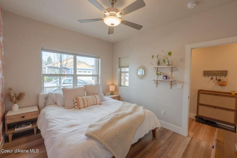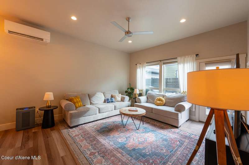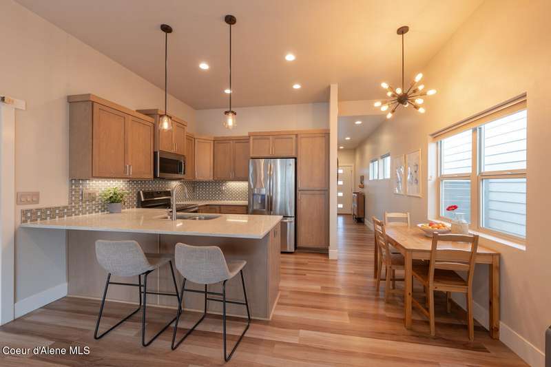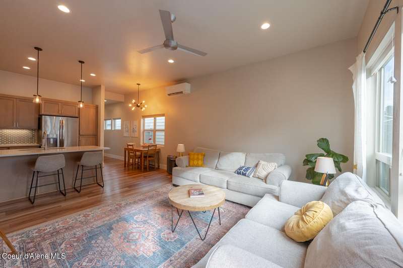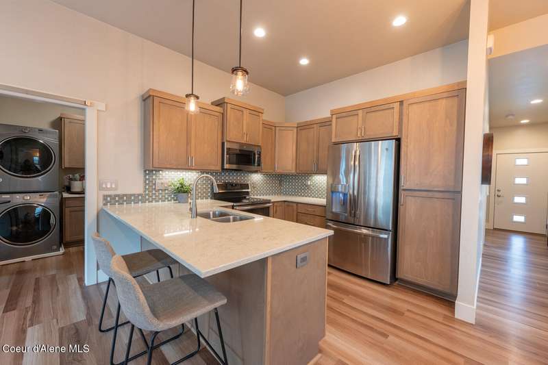 Stunning, like new home in the desirable and gated 'Circuit at Seltice' neighborhood, which is conveniently located close to waterfront, shopping and dining! Energy efficient, LEED certified home with many national awards. Master bedroom has a full walk in tile shower and built in closet organizers. Built in cabinetry in laundry, stone accenting on the exterior, full height tile backsplash in kitchen. Refrigerator, washer and dryer included! Private walk through gate to access the riverfront and many amenities. Doma Coffee is just a short stroll away!