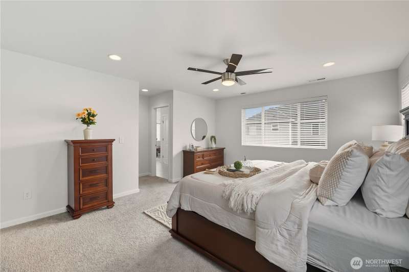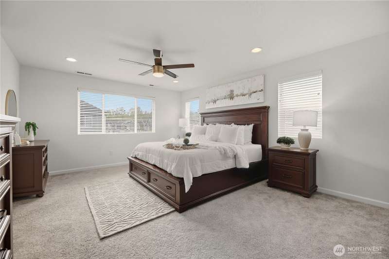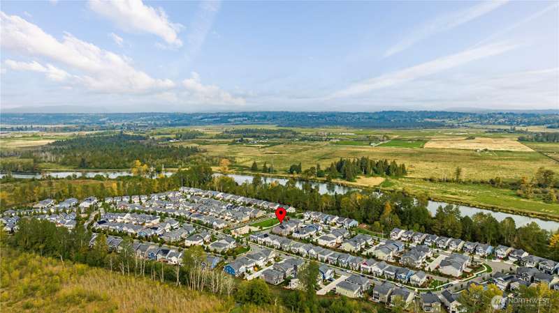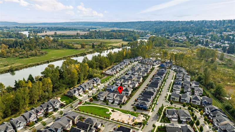 Welcome to Overlook at Riverfront, a picturesque community with an upcoming town center in walking distance and a bright future for lifestyle and home equity. This spacious 5 bed + bonus room home sits on a corner lot and includes solar panels, tankless hot water, gas fireplace, and faux wood blinds throughout. The kitchen offers granite counters, a large island, full backsplash, gas cooking, walk-in pantry, flex zone fridge, and upgraded hood vent. Fully fenced low maintenance yard, two primary suites (one on the main floor) and nearby river trails where you can see seals, otters, and eagles. Close to I5, HWY 2, and future light rail stop. Inspection available!