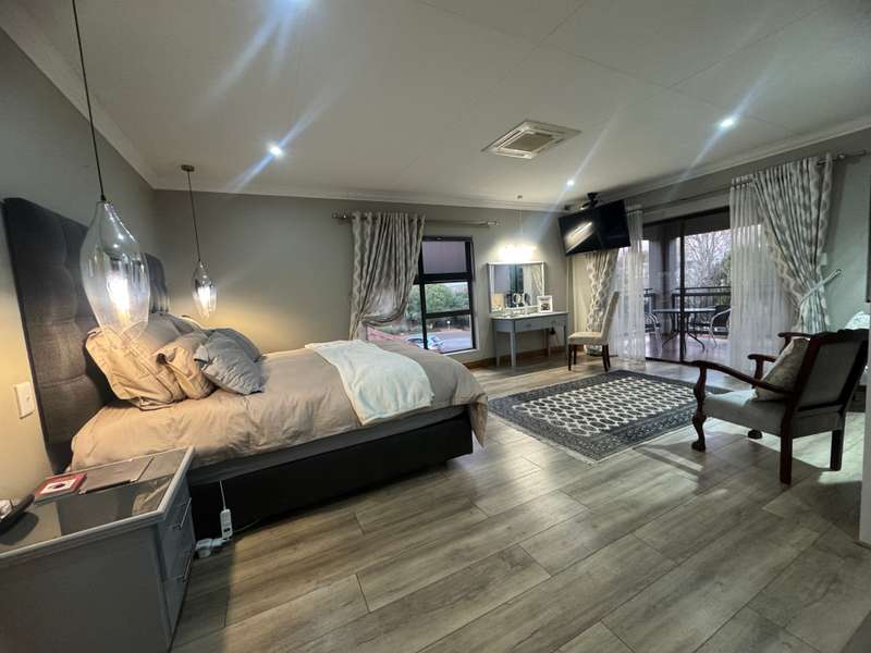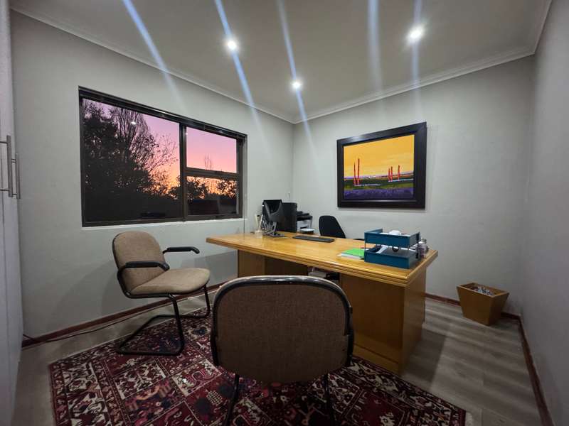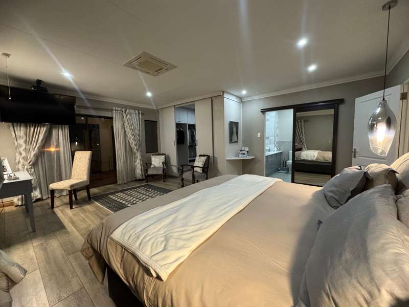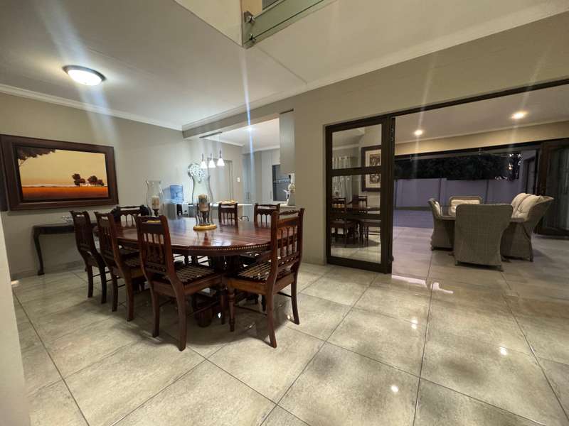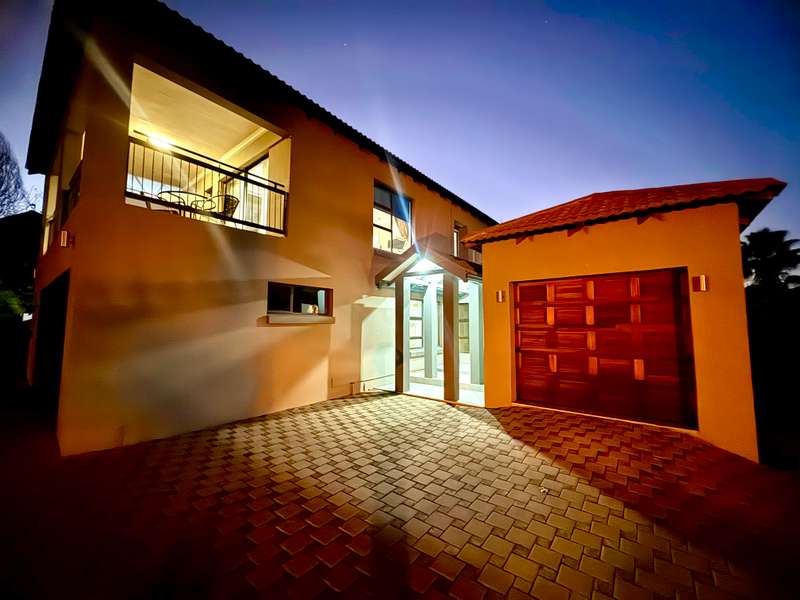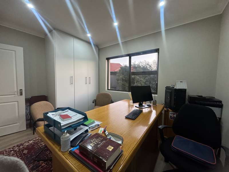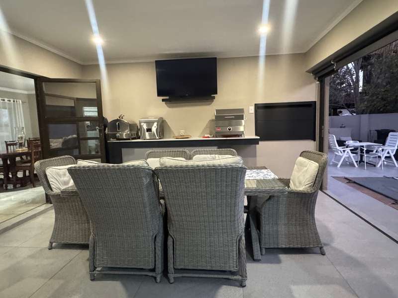 Tucked away in a peaceful cul-de-sac, this well-appointed home enjoys a prime location just a short stroll from scenic hiking trails, tennis courts, a bowling green, and a nearby convenience centre. Step inside to discover spacious, open-plan interiors designed for both everyday comfort and entertaining. The heart of the home features a welcoming formal lounge, a dining area, and a well-equipped kitchen that flows seamlessly into an indoor entertainment zone complete with a built-in braai. A cozy TV lounge connects to a bright sunroom, perfect for relaxing year-round. Upstairs, a versatile space can serve as either a home gym or private study, and opens onto its own balcony. The main bedroom offers a peaceful retreat, featuring a luxurious en-suite bathroom, a walk-in dressing area, and a private balcony. Two additional bedrooms – one currently styled as a study – share a modern shower room. Additional highlights include a double garage plus a separate single garage with extra storage space, a sparkling swimming pool, and a solar energy system for sustainable living. For a private viewing, get in touch with Annette Kasselman today and experience this exceptional property firsthand.