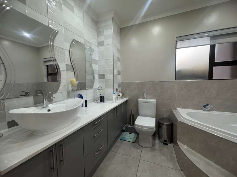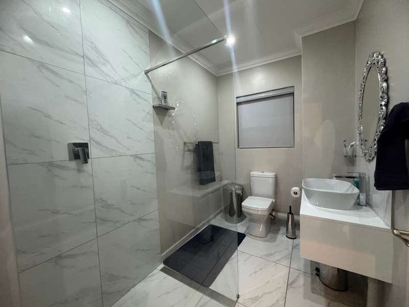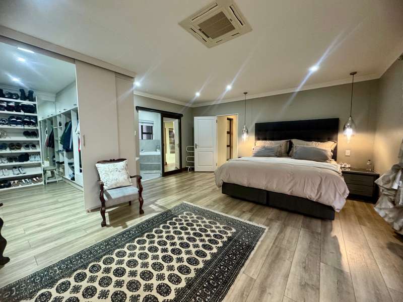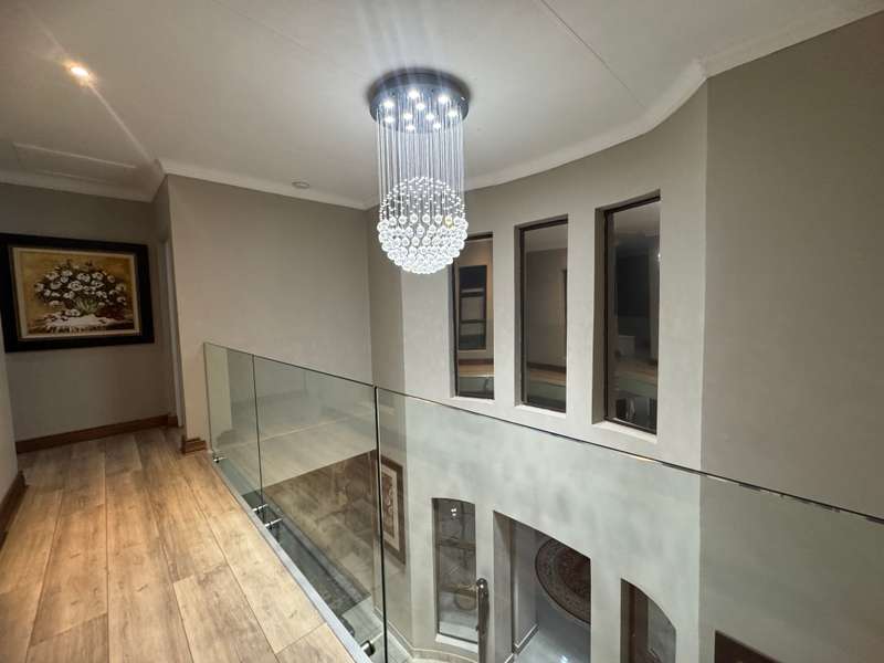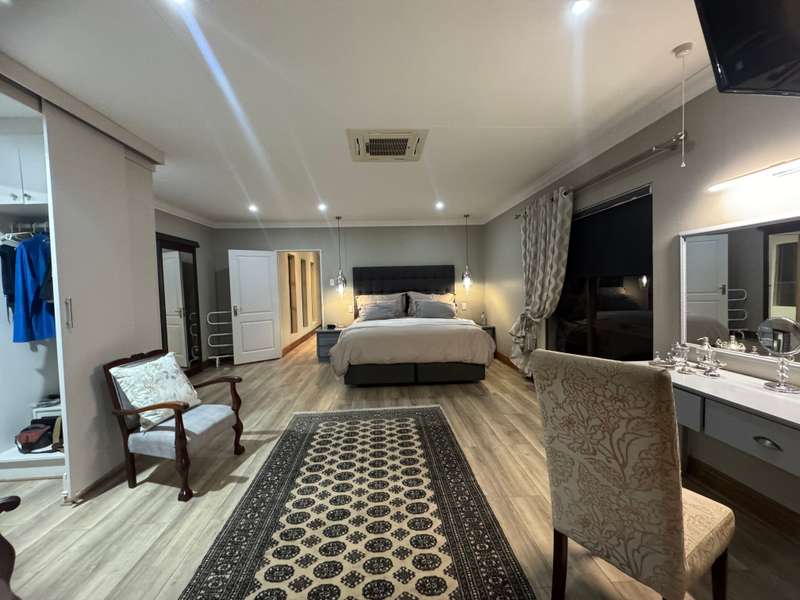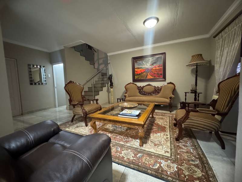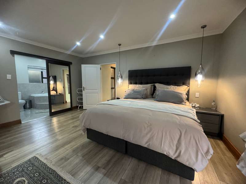 Tucked away in a peaceful cul-de-sac, this well-appointed home enjoys a prime location just a short stroll from scenic hiking trails, tennis courts, a bowling green, and a nearby convenience centre. Step inside to discover spacious, open-plan interiors designed for both everyday comfort and entertaining. The heart of the home features a welcoming formal lounge, a dining area, and a well-equipped kitchen that flows seamlessly into an indoor entertainment zone complete with a built-in braai. A cozy TV lounge connects to a bright sunroom, perfect for relaxing year-round. Upstairs, a versatile space can serve as either a home gym or private study, and opens onto its own balcony. The main bedroom offers a peaceful retreat, featuring a luxurious en-suite bathroom, a walk-in dressing area, and a private balcony. Two additional bedrooms – one currently styled as a study – share a modern shower room. Additional highlights include a double garage plus a separate single garage with extra storage space, a sparkling swimming pool, and a solar energy system for sustainable living. For a private viewing, get in touch with Annette Kasselman today and experience this exceptional property firsthand.