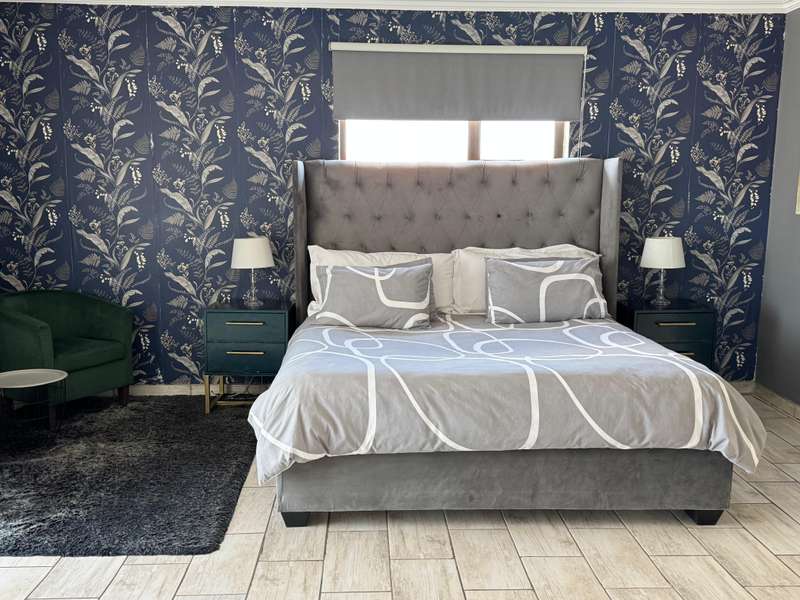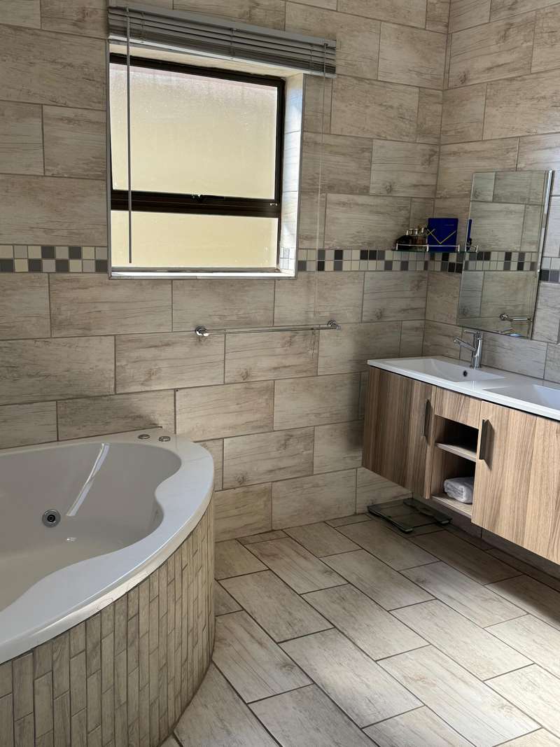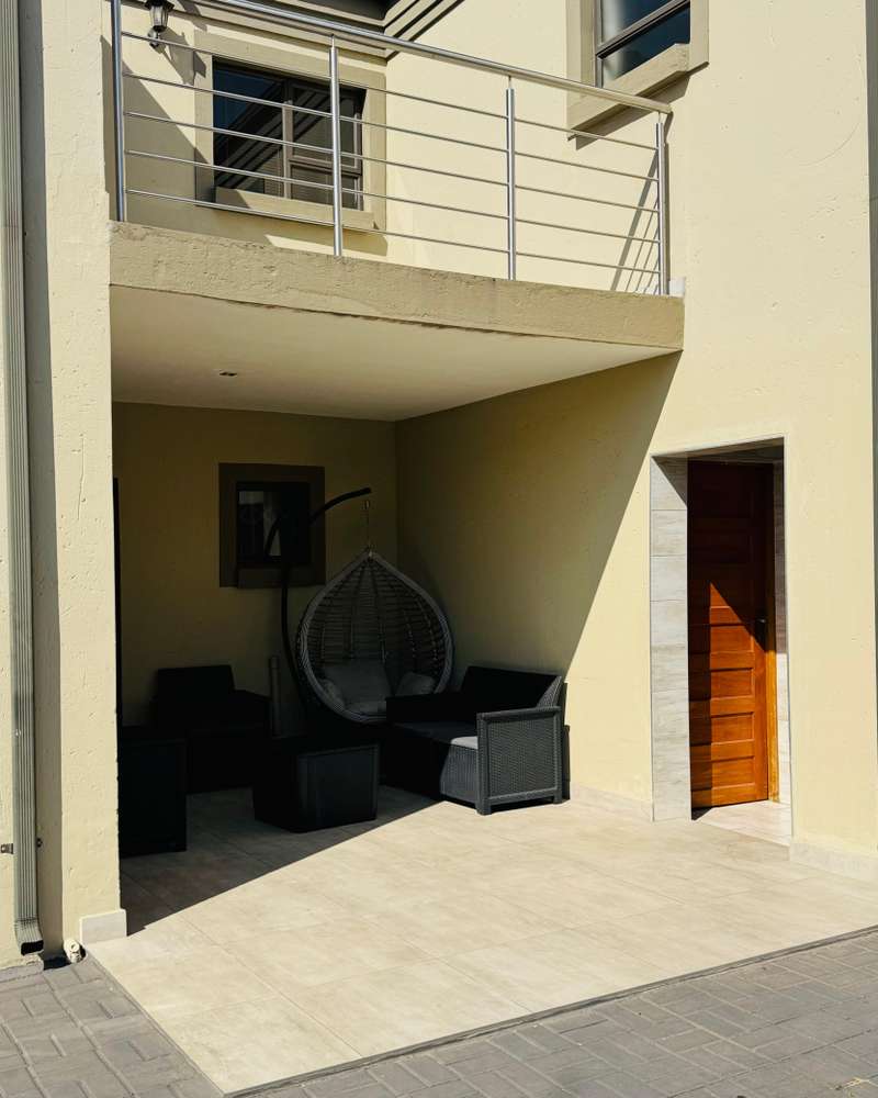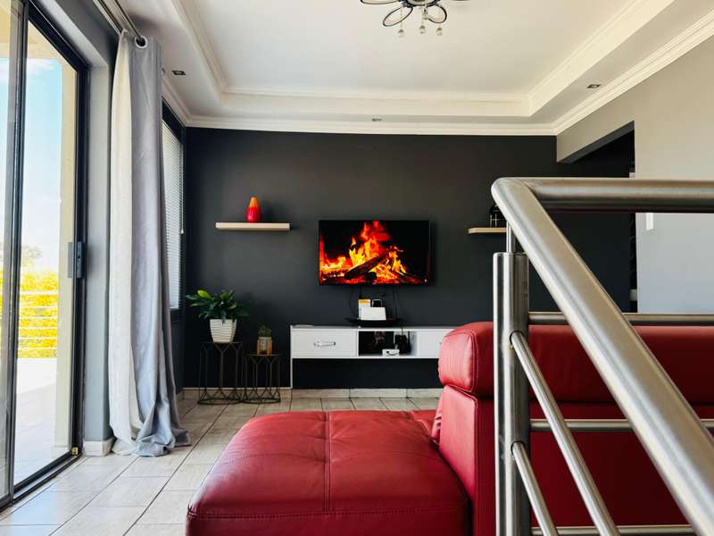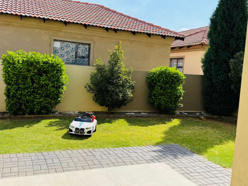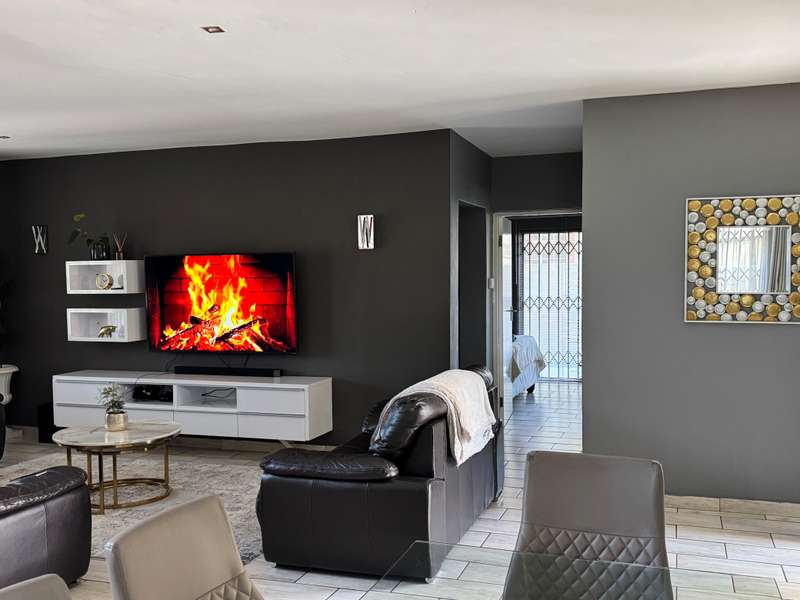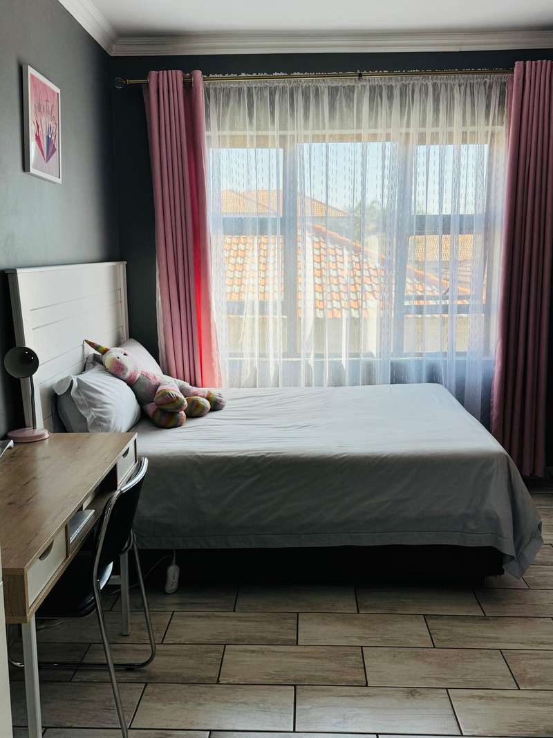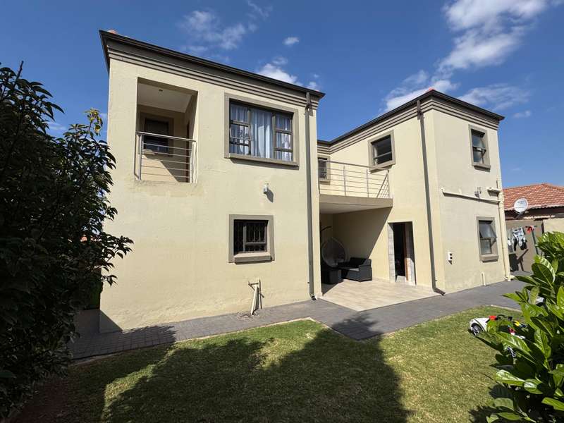 Modern double story-house in secure complex . Open plan lounge with dining room and modern kitchen with gas stove . 4 bedroom, one main bedroom upstairs with dressing room and full en suite bathroom ,with sliding door to balcony. Double garage with remote door ,lovely patio outside. Prepaid electricity and fiber. This property is in a secure complex on main road to springs ,hospital and shopping centre.