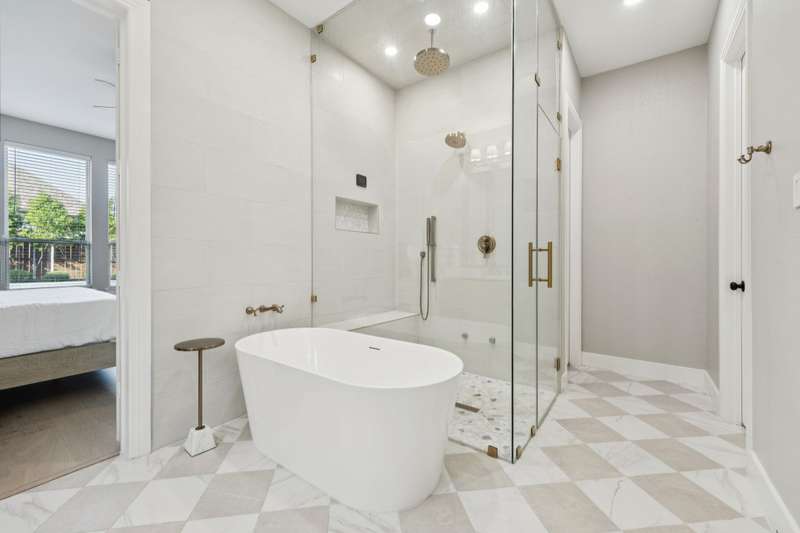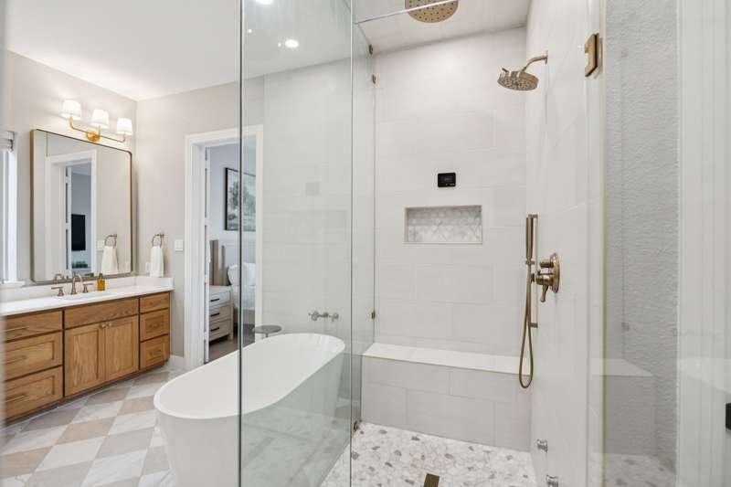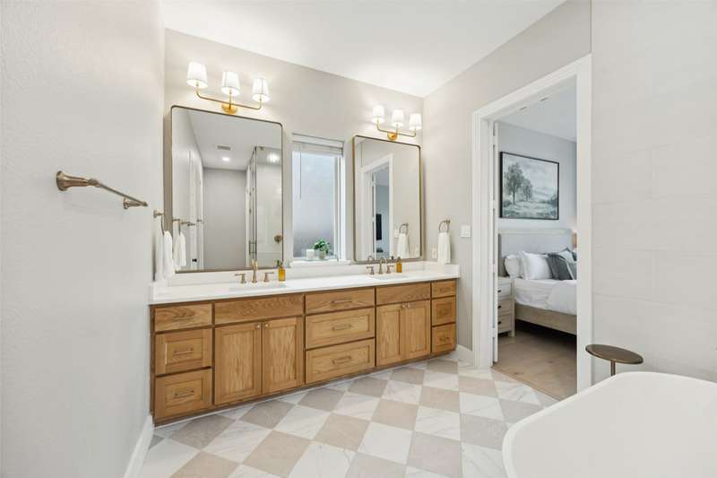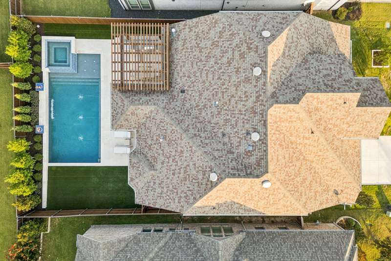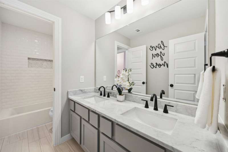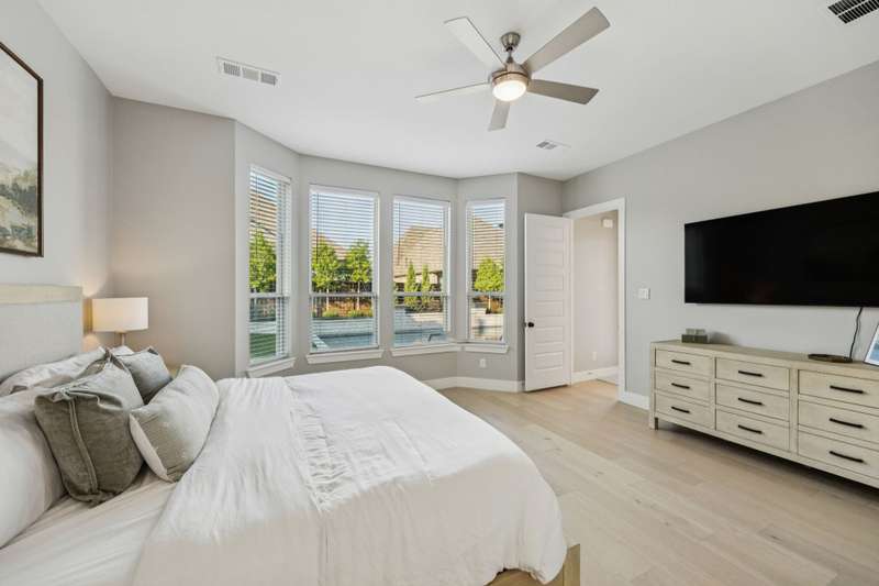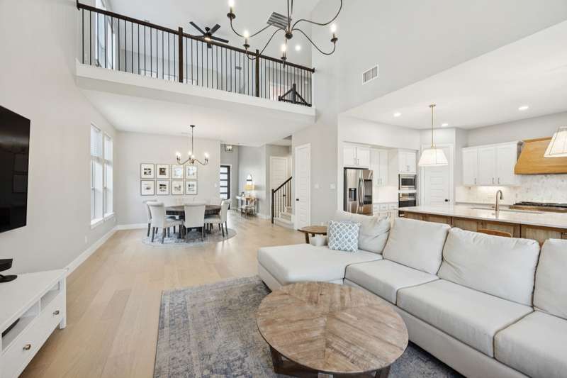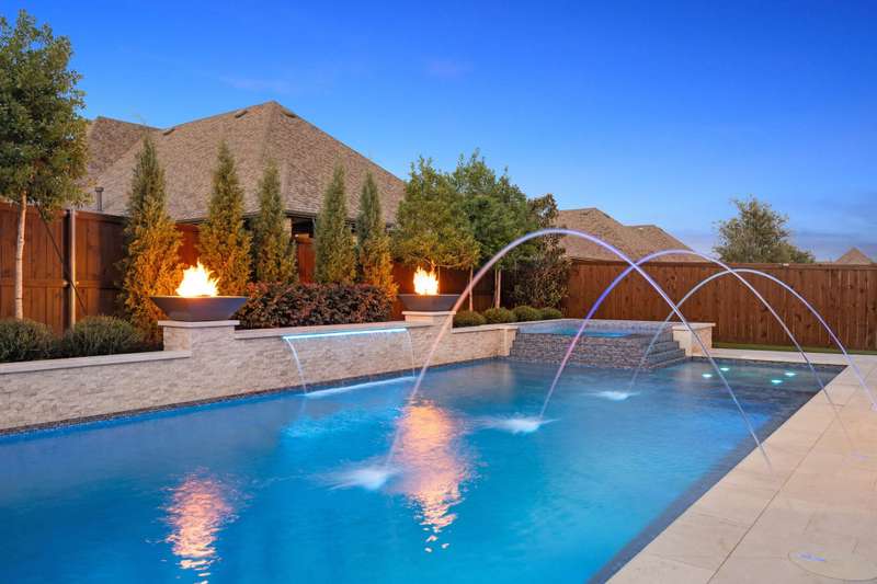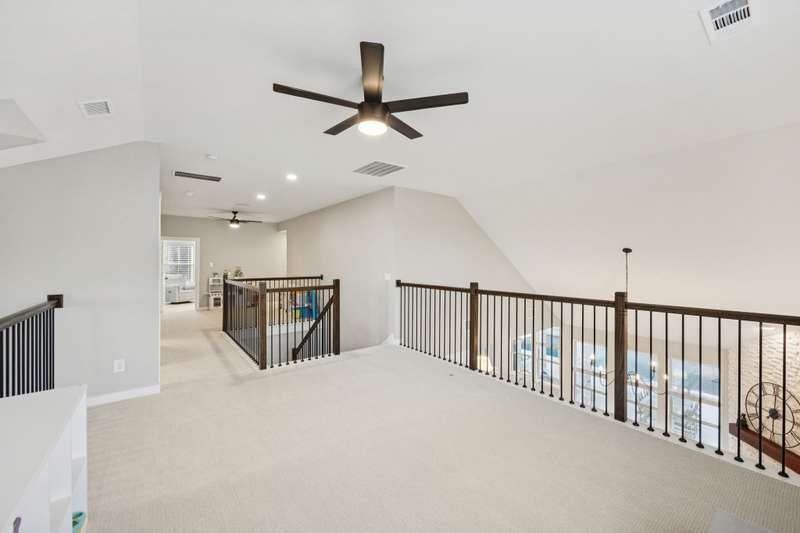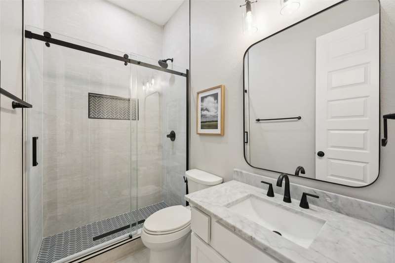 This inviting home is designed w-both style & comfort in mind. Step inside to soaring high ceilings that fill the living spaces w-natural light & create an open, airy atmosphere. The living rm is a true centerpiece, featuring a dramatic corner stone fireplace that adds warmth & characterperfect for cozy evenings. A dedicated home office provides the ideal space for working from home or managing daily tasks, while the main floor guest bedroom offers comfort and privacy for visitors. This show-stopping kitchen features a high-end design. Custom cabinetry offers both style and storage, while designer pendant lighting adds warmth and sophistication. The space is anchored by an oversized island with a gleaming Taj Mahal quartzite top, providing abundant prep space, casual seating, and a natural gathering spot for family and friends. Sleek stainless steel appliances, elegant tile backsplash, and thoughtfully chosen finishes complete the lookcreating a kitchen that is as stylish and luxurious as it is practical. This stunning master suite is designed as the ultimate private escape. Walls lined with expansive windows fill the room with soft, natural light and offer serene views, creating a warm and inviting atmosphere. The spa-inspired ensuite bath is a dream come true! With a freestanding soaking tub and a huge glass-enclosed steam shower designed for the ultimate rejuvenating experience. Dual vanities, elegant finishes, and spacious storage complete the space, blending style and functionality seamlessly. Upstairs boasts 3 bedrooms, all upgraded baths, and game room! 3 car garage w-epoxy. Step outside to your own private 300K oasis for true relaxation. The centerpiece is a sparkling modern pool w-cascading water features & playful fountains, enhanced by glowing fire bowls that create a dramatic ambiance day or night. The covered patio w-wood pergola is perfectly designed for outdoor dining, w-built in kitchen & framed by lush landscaping and privacy fencing! Must See!