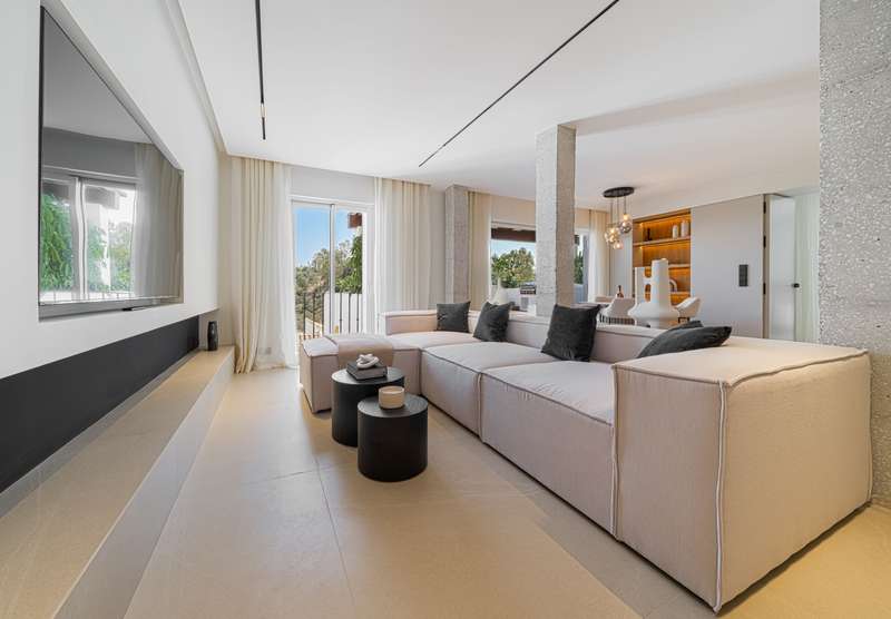 Beautiful apartment situated in a peaceful neighborhood but conveniently close to various facilities, restaurants, and shops. Recently renovated and fully prepared for immediate occupancy, this property provides ample space, abundant natural light, and an open floor plan. The living room offers direct entry to a south-facing terrace boasting stunning views of the sea, making it the ideal spot for spending quality time with loved ones. Additionally, this contemporary three-bedroom residence boasts two bathrooms with underfloor heating, top-of-the-line appliances, private parking, and access to a spacious communal pool and beautifully landscaped gardens.
