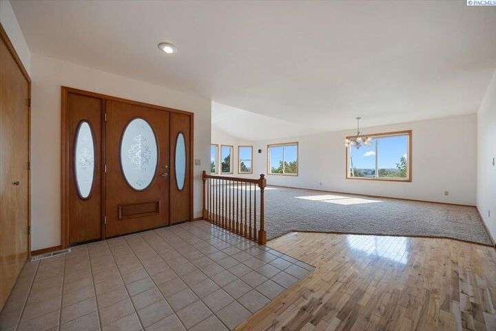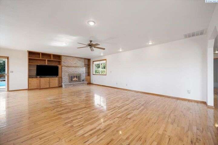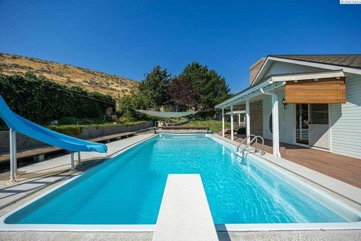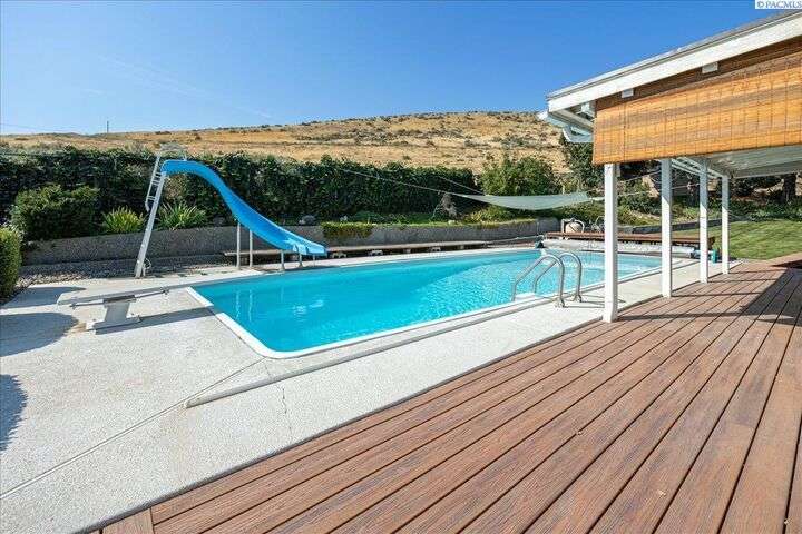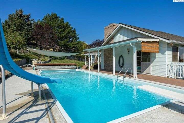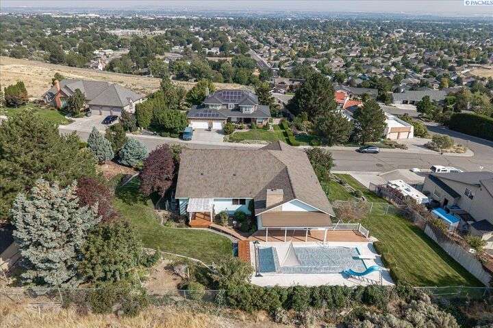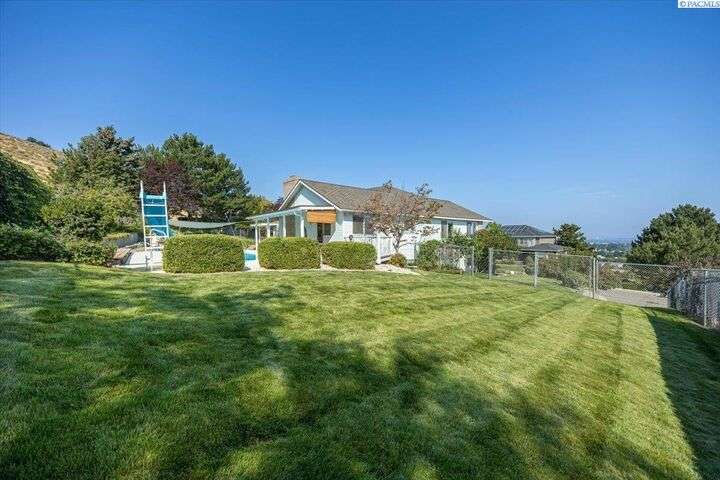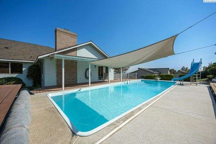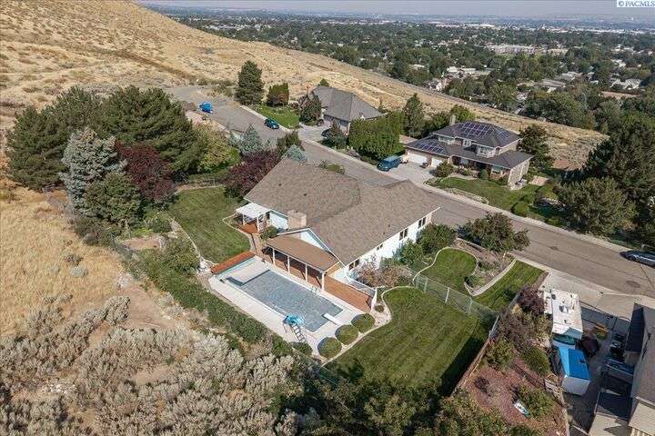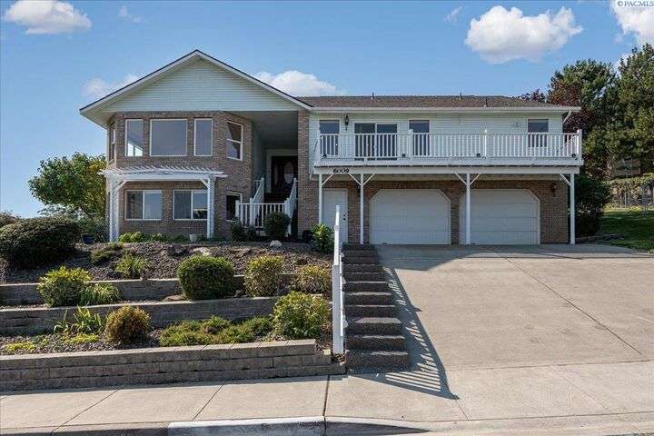 MLS# 287094 Here it is! 5150 square feet! The perfect retreat! This home has so much to offer! 3 bedroom on upper level with possibility for more on main level! The main level has 2270 square feet of space already set up for kitchen, bedrooms and living space. Bathroom is completed with dual sinks and shower. Perfect space for multigenerational living or apartments space. Everything is plumbed and ready to make it your own. The upper level is a perfect resort area for the family and company! Outdoor underground fiberglass pool that is so refreshing on those hot days or perfect for entertaining. Newer pump included. Pool is equipped with all the supplies needed. As you enter this custom built home you will be wowed at the spacious open area and natural light! Amazing panoramic views of the Tri Cities and river! Gaze at the sparkling city lights in the evening. Large living room to entertain or relax in. The kitchen is a chefs dream. Ample cabinet and counter space. Hardwood flooring flows from kitchen into family room area. Kitchen features granite counters, tile accent, undermount sink, cooktop and oven, dishwasher and microwave. Kitchen flows into the family room. Easy to watch the kids play or visit with family and friends while preparing meals. Wood burning accented fireplace and shelving complete this cozy area. Step out the door onto the trex deck and splash in the pool. Backyard has fenced yard, underground sprinklers, beautiful flowers and trees, and patio and deck. Continuing on upper level you will find a great craft room/laundryroom with so much storage! Primary bedroom is very spacious. Step out on the balcony and take in the views! Primary bath includes walk in closet, dual sinks, large jetted tub and shower. 2 spacious bedrooms and a main full bathroom complete the upper level. Other features to this home include dual garage door openers, owned water softener, newer water heater, newer roof, dual HVAC units, custom shades, and newer solar pool cover. This amazing home has so much curb appeal with brick accents and steps with railing to the home. Don't miss seeing this hidden gem.