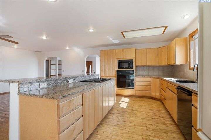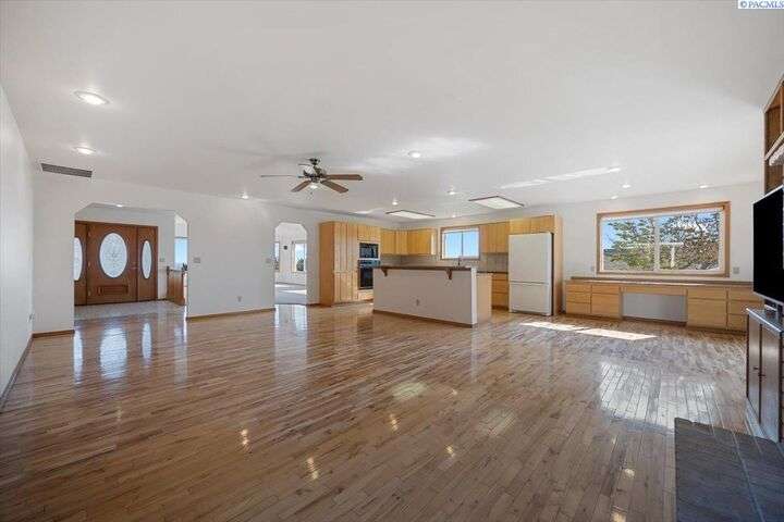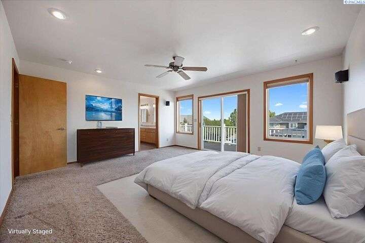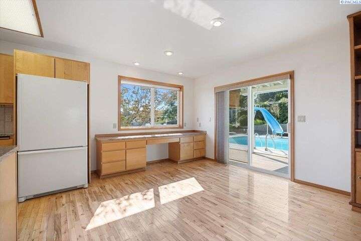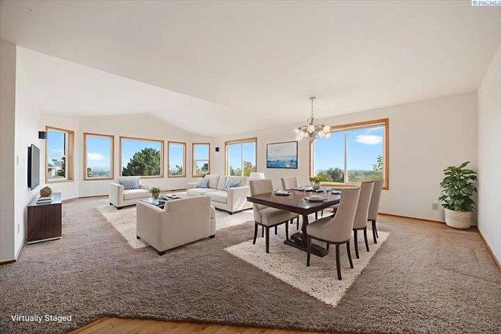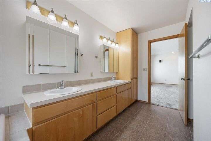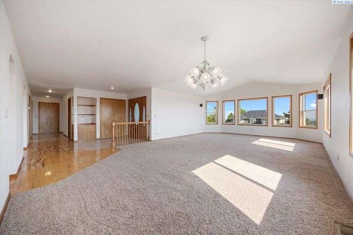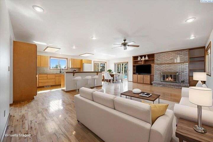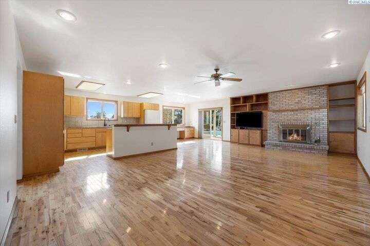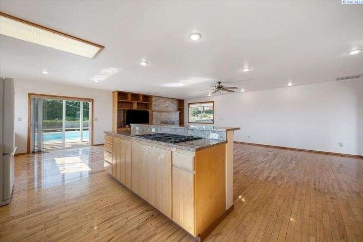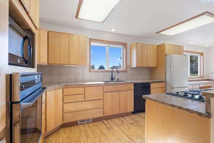 MLS# 287094 Here it is! 5150 square feet! The perfect retreat! This home has so much to offer! 3 bedroom on upper level with possibility for more on main level! The main level has 2270 square feet of space already set up for kitchen, bedrooms and living space. Bathroom is completed with dual sinks and shower. Perfect space for multigenerational living or apartments space. Everything is plumbed and ready to make it your own. The upper level is a perfect resort area for the family and company! Outdoor underground fiberglass pool that is so refreshing on those hot days or perfect for entertaining. Newer pump included. Pool is equipped with all the supplies needed. As you enter this custom built home you will be wowed at the spacious open area and natural light! Amazing panoramic views of the Tri Cities and river! Gaze at the sparkling city lights in the evening. Large living room to entertain or relax in. The kitchen is a chefs dream. Ample cabinet and counter space. Hardwood flooring flows from kitchen into family room area. Kitchen features granite counters, tile accent, undermount sink, cooktop and oven, dishwasher and microwave. Kitchen flows into the family room. Easy to watch the kids play or visit with family and friends while preparing meals. Wood burning accented fireplace and shelving complete this cozy area. Step out the door onto the trex deck and splash in the pool. Backyard has fenced yard, underground sprinklers, beautiful flowers and trees, and patio and deck. Continuing on upper level you will find a great craft room/laundryroom with so much storage! Primary bedroom is very spacious. Step out on the balcony and take in the views! Primary bath includes walk in closet, dual sinks, large jetted tub and shower. 2 spacious bedrooms and a main full bathroom complete the upper level. Other features to this home include dual garage door openers, owned water softener, newer water heater, newer roof, dual HVAC units, custom shades, and newer solar pool cover. This amazing home has so much curb appeal with brick accents and steps with railing to the home. Don't miss seeing this hidden gem.
