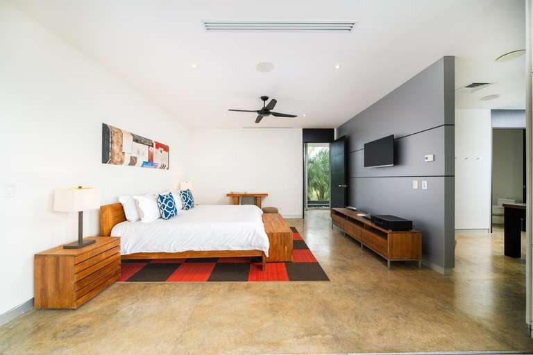 The main residence features 4 spacious bedrooms and 4.5 bathrooms, including a standout master suite with a private ocean-view balcony—an ideal sanctuary to unwind and soak in the sunsets. The open-concept layout connects bright interior spaces with the outdoors, creating a seamless flow from the indoor living area to the large covered terrace and pool deck.