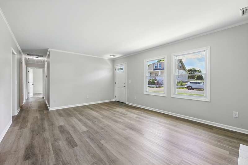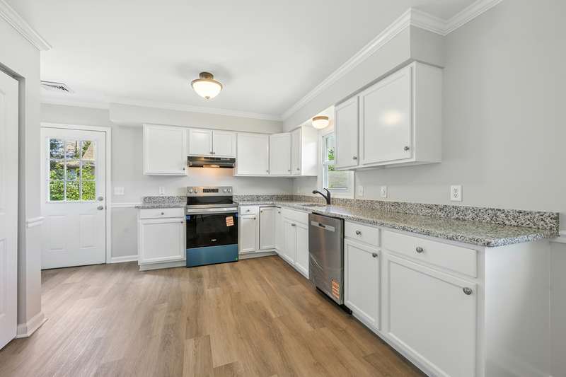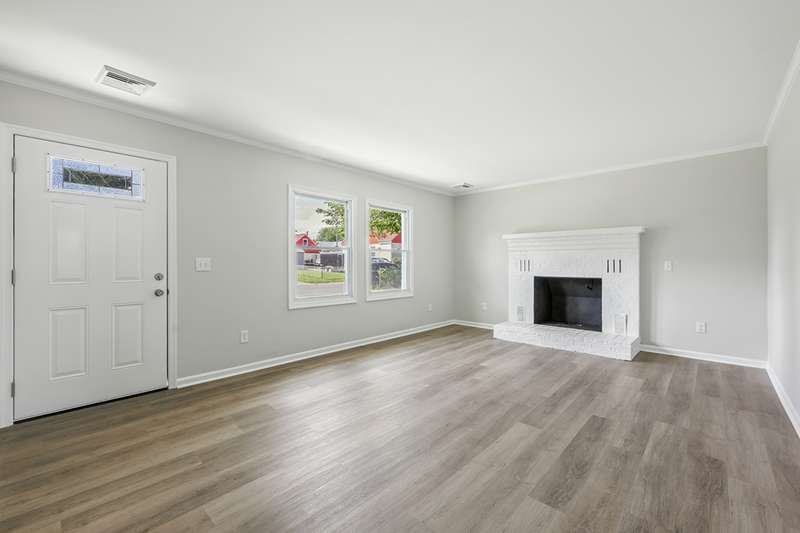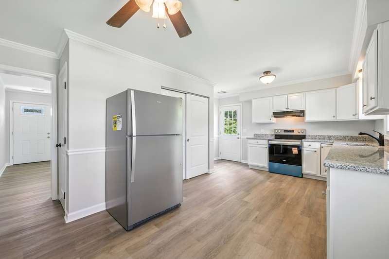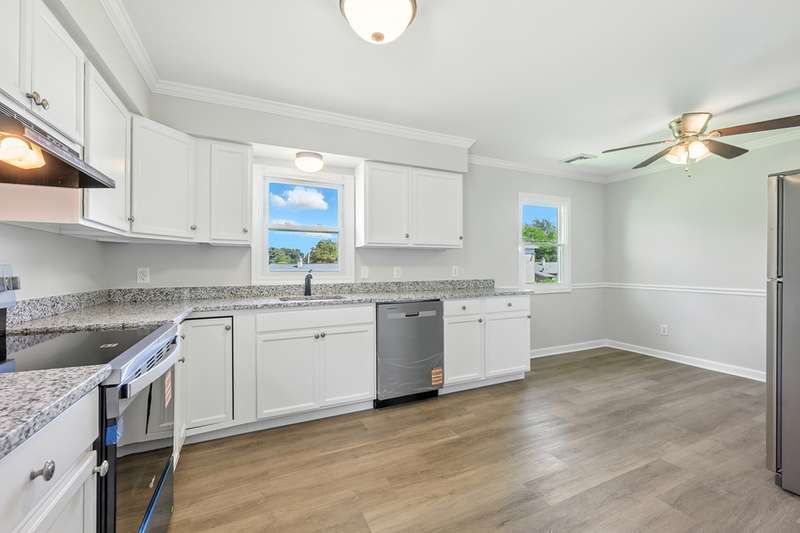 This home is eligible for 100% financing with no PMI! Welcome Home! This charming and newly renovated 3 bedroom, 2 bathroom ranch home with expanded driveway is ready to welcome its new owner! You'll love this bright and sunny floorplan. Large living room with fireplace, kitchen with plenty of white cabinetry and expansive granite counter-space, new stainless steel appliances. The primary bedroom has its own full bathroom and 2 additional bedrooms and bathrooms round out the interior. Everything is new here- all new windows, doors, siding, gutters, heatpump with central air, water heater, appliances, flooring, paint, doors.