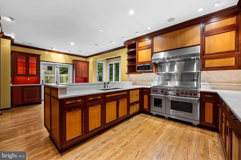 Welcome - one of the largest units in Roland Park North. This end unit which provides extra light and extra space. Every inch of this luxury townhouse has been efficiently utilized and meticulously maintained, and the grounds are well landscaped. Open spacious living room, dining room combination, fireplace, expansive deck with storage for seasonal items, hardwood floors on first level, remodeled kitchen with commercial Wolfe stove (propane), family room with useful built-ins, private fenced courtyard. Second level boasts remodeled primary bedroom and bath, bedroom with office built-ins, and one additional bedroom. Finished third floor, full bathroom, office built-ins and all new mini split heating and air conditioning unit. Lower level has a two car garage and a large finished utility room with washer and dryer, ample storage for family heirlooms, or treadmills, crafting or container gardening. Downsize or upsize, this space lives oh so well and easily from the moment you pull into your two car garage. Easy to enjoy!