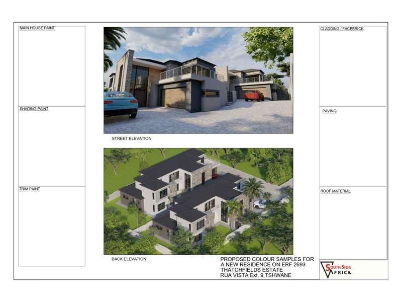 Thatchfield Close, Rua Vista, The Reeds, Centurion ?Çô Direct Purchase from Developer, No Transfer Duties Mother Erf 1305m2 Dewllings A & B +/- 652.5m2 each Welcome to Thatchfield Close, a premier development located in Rua Vista, The Reeds, Centurion. This property offers the benefit of direct purchases from the developer with no transfer duties, providing ease and savings for buyers. The development is secured by 24-hour security, ensuring peace of mind for residents. This elegant two-story house features a total of 4 bedrooms, each with ensuite bathrooms and built-in cupboards (BIC). The entrance hall welcomes you into the spacious ground floor, which spans 226 m??. Here, you will find a guest room with an ensuite bathroom, an additional guest toilet, and a large kitchen designed to accommodate a double-door fridge. The kitchen is equipped with an electric oven, a gas hob, and a walk-in pantry. The first floor, covering 151 m??, includes 3 bedrooms, each with ensuite bathrooms and BIC. This floor also boasts a pajama lounge and access to two balconies, offering ample space and comfort for family living. Outside, the property features a private, pet-friendly garden and domestic quarters. The auto double garage provides space for tools, and a garden service is available for lawn maintenance, ensuring the property remains well-kept. Residents of Thatchfield Close enjoy easy access to the N14 and R55 routes, making commuting and travel convenient. The development is close to various amenities, including filling stations, hospitals and clinics, a police station, primary schools, Curro Thatchfield School, shopping centers, and tertiary institutions. Experience the ultimate blend of luxury, convenience, and security at Thatchfield Close, your perfect new home in Centurion.