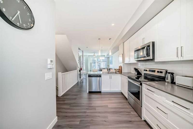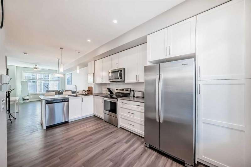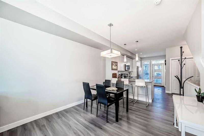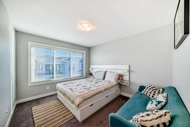 Welcome to this Fully Finished bright and stylish 3-bedroom, 2.5-bath townhome in the vibrant community of Seton. Offering over 1,315 sq. ft. of modern living space, this beautifully maintained home features an open-concept main floor—perfect for both everyday living and entertaining. The kitchen stands out with its sleek white cabinetry, quartz countertops, stainless steel appliances, and a large island with seating. The spacious living and dining areas are filled with natural light from oversized windows and open onto a private balcony—ideal for your morning coffee or summer BBQs. Upstairs, you’ll find two generously sized bedrooms, each complete with its own ensuite—perfect for roommates, guests, or a home office setup. A conveniently located laundry area completes the upper level.In the lower level you have a third bedroom / Den with separate entrance out the back. Additional highlights include a main-floor powder room and an attached garage offering secure parking and extra storage. Located just steps from the South Health Campus, YMCA, shopping, restaurants, and with easy access to major roadways, this home delivers unbeatable convenience in one of Calgary’s fastest-growing communities. Move in and enjoy everything Seton has to offer! Pet friendly