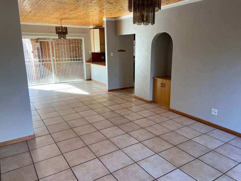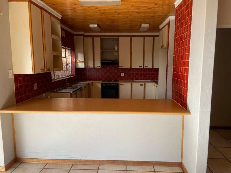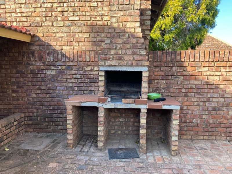 This well-kept property offers comfortable living with added extras for those who enjoy entertaining. The home features three carpeted bedrooms, all with built-in cupboards, and two bathrooms — the main bedroom has its own en-suite for added convenience. The open-plan kitchen and living area is tiled and fitted with ample built-in cupboards and a stove, with air conditioning ensuring year-round comfort. Step outside to a built-in bar and braai area, perfect for hosting friends and family. The small garden is easy to maintain, and the double garage provides secure parking. Security bars on all windows offer peace of mind. A practical and inviting home — ready to move in and enjoy.